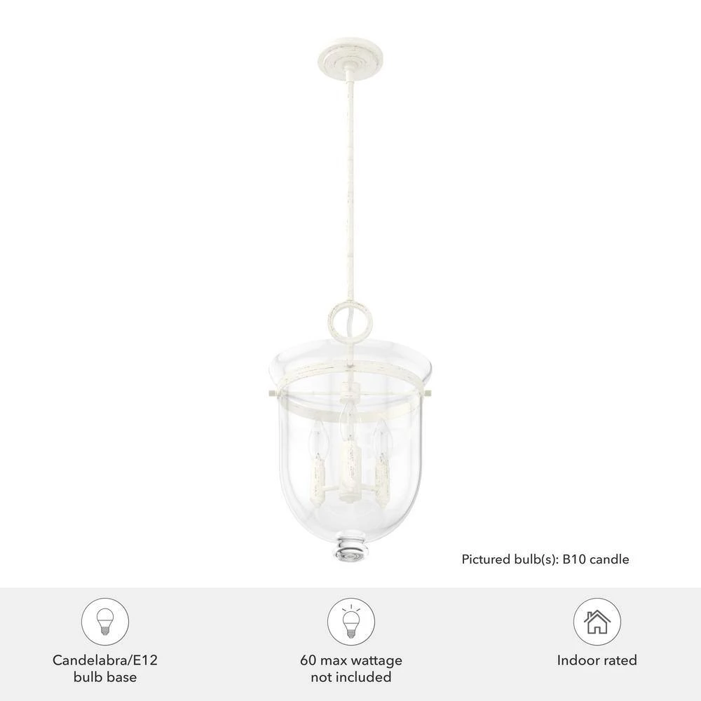 - PREMIUM DESIGN: a casual transitional design with attractive rustic white finish and premium clear glass shading perfect for illuminating kitchens, living rooms, foyers, nooks, and dining areas