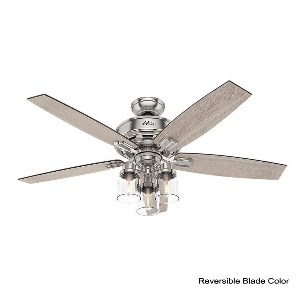 Regarded as one of our best ceiling fans by designers and homeowners alike, the renewed classic look of a Bennett ceiling fan will add flair to your traditional living spaces. The smoked yet clear multi-light side glass completes this fan’s harmonious color palette while adding a touch of glamour. The energy-efficient LED Edison bulbs enhance the ambiance of your room while a powerful WhisperWind motor will make your formal, chic spaces as functional as they are stylish.