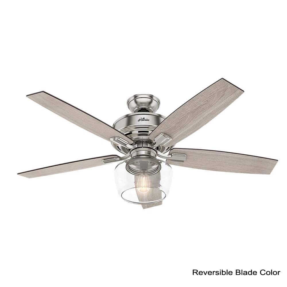 - FLIP THE BLADE: This fan features 5 reversible Light Gray Oak and Greyed Walnut blades to help match your room’s design