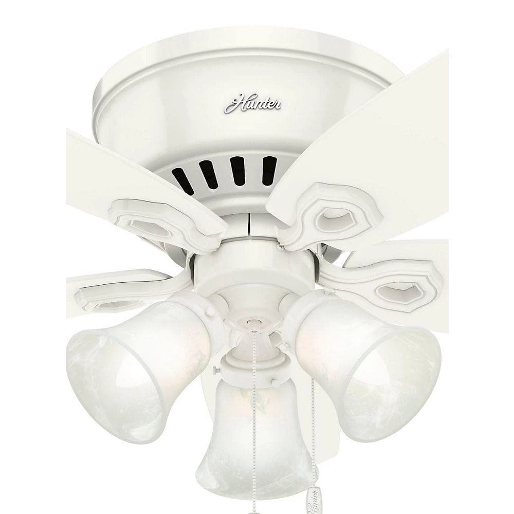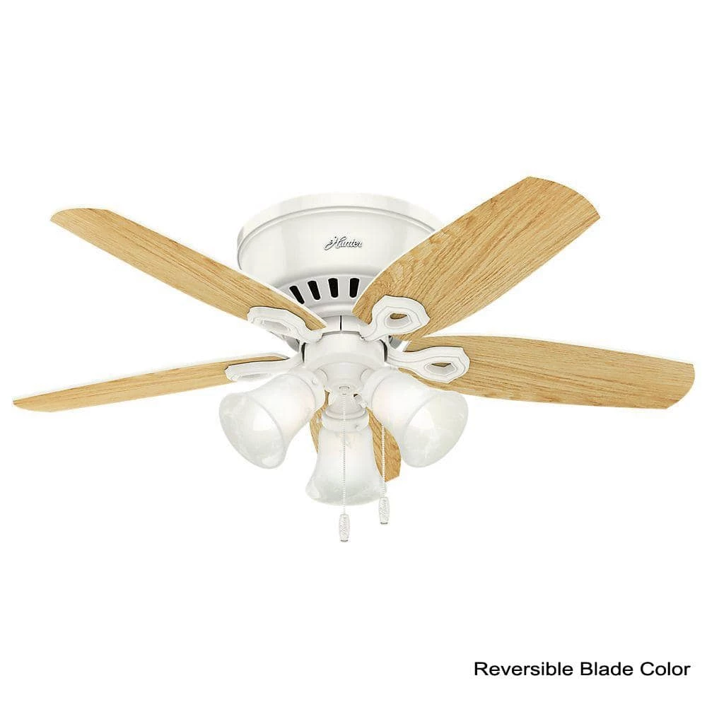 With a 42-inch blade span and low-profile design, the casual, traditional style of the Builder Low Profile will complement small rooms in your home without overpowering them. A mainstay in the Hunter product line, this low-profile ceiling fan with lights features three-speed WhisperWind motor technology to deliver quiet and ultra-powerful performance.