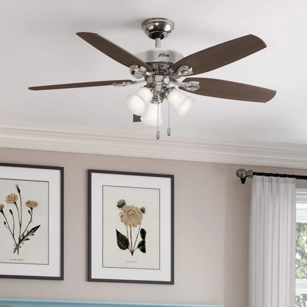 A mainstay in the Hunter collection of fans, the casual, traditional design of the Builder classic ceiling fan with light complements your rooms without overpowering them. The Builder fan includes 3 LED light bulbs to help illuminate your large indoor rooms like bedrooms and living rooms. Featuring WhisperWind Motor technology, it delivers the quiet, ultra-powerful air performance you expect from a ceiling fan. Available in a variety of finishes and sizes, use the Builder Collection to create a cohesive look throughout your home.