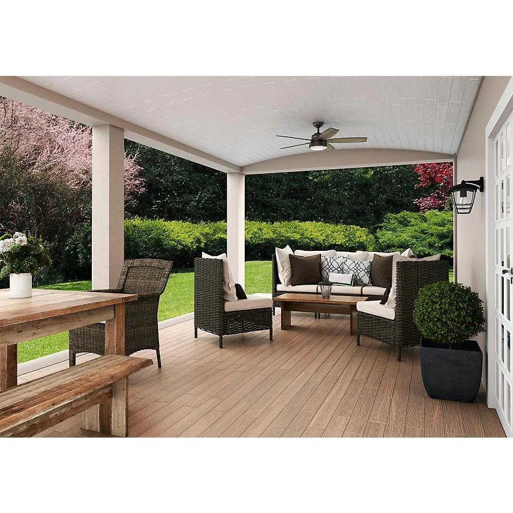 Industrial details of the rivets on the fan blades and the thumbscrews holding the light glass designed to resemble the portholes of a ship complete the rustic design of the Channelside ceiling fan. Perfect for any room or covered space exposed to moisture and humidity, this damp-rated fan includes stainless steel hardware and will fit nicely in your large, outdoor sunroom or patio’s coastal decor style. Featuring energy-efficient LED lights and three-speed WhisperWind motor technology, the Channelside rustic ceiling fan will deliver superior air movement and whisper-quiet performance so you get all the cooling power you want without the noise.