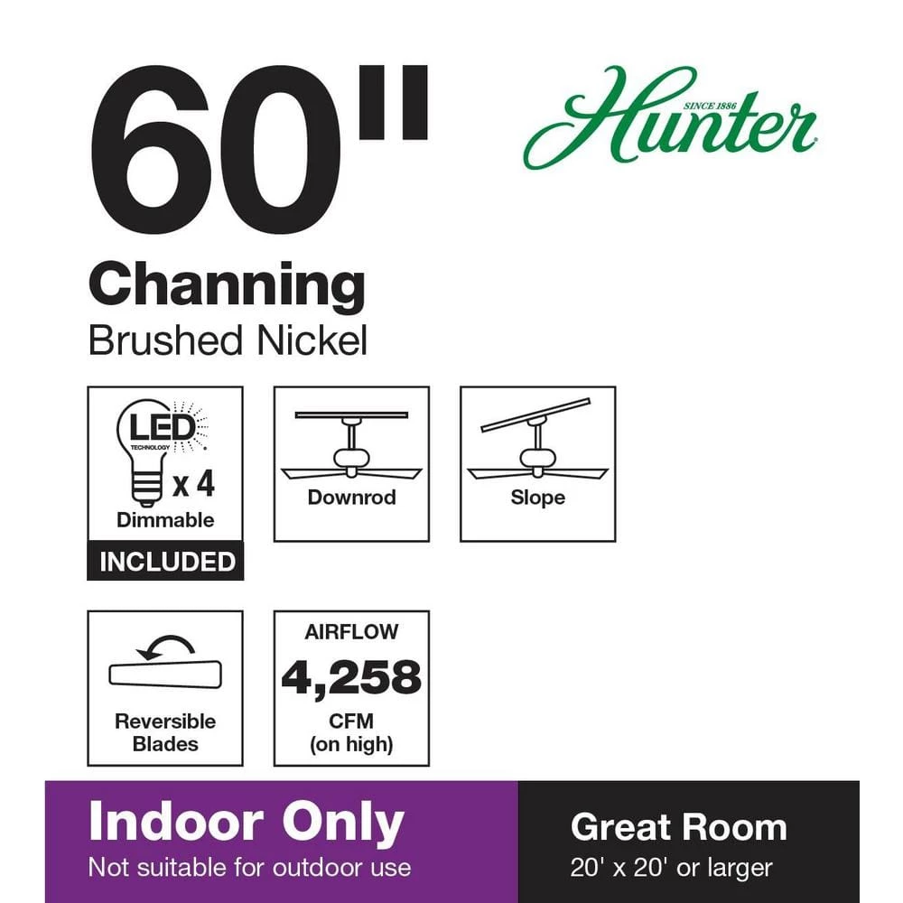 The Channing fan has four, energy-efficient LED bulbs and a sizeable blade span so you know you’ll always have enough bright light and air movement to fill any large room in your home. The sleek design and state-of-the-art three-speed WhisperWind motor delivers ultra-powerful air movement with a whisper-quiet performance so you get the cooling power you want without the noise. This LED ceiling fan is part of the Channing collection, which offers different sizes and options so you can maintain a consistent look throughout every room in your house.