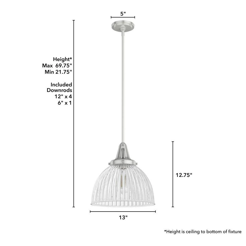 Brighten your space with a unique fluted glass. The Cypress Grove’s 13 in. pendant adds a sophisticated touch to a wide range of styled spaces. With its crisp finishes and elegant light shade, this pendant elevates modern and traditional spaces alike.