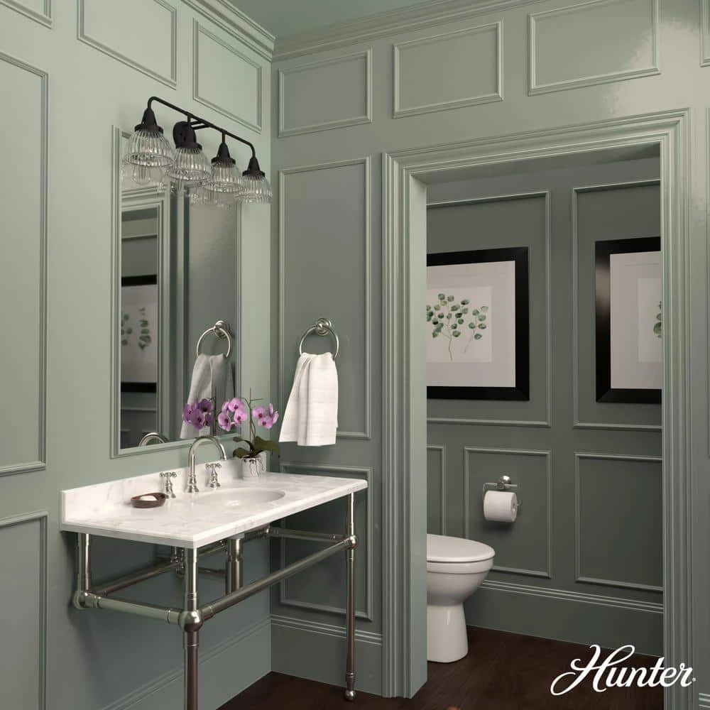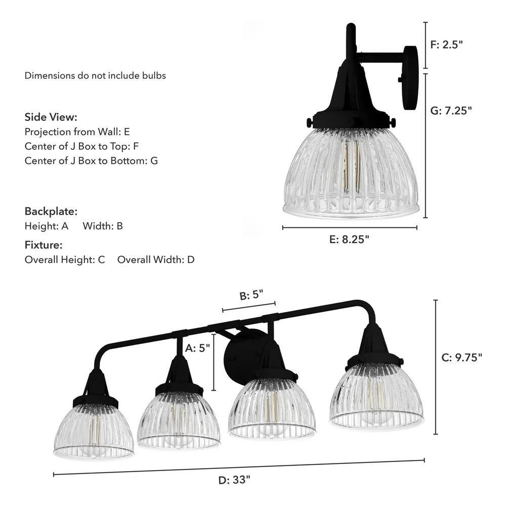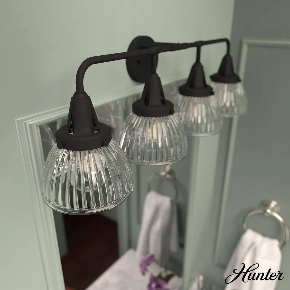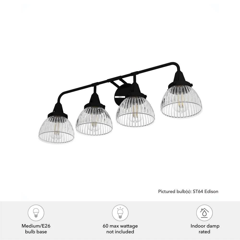 Strong details and with an elegant twist. The Cypress Grove 4 light vanity light pairs industrial form with intricate fluted glass to create something unforgettable. This indoor damp-rated fixture makes a statement in transitional and modern bathrooms. Carry this industrial theme throughout your space by pairing this vanity light with other fixtures for the Cypress Grove collection.