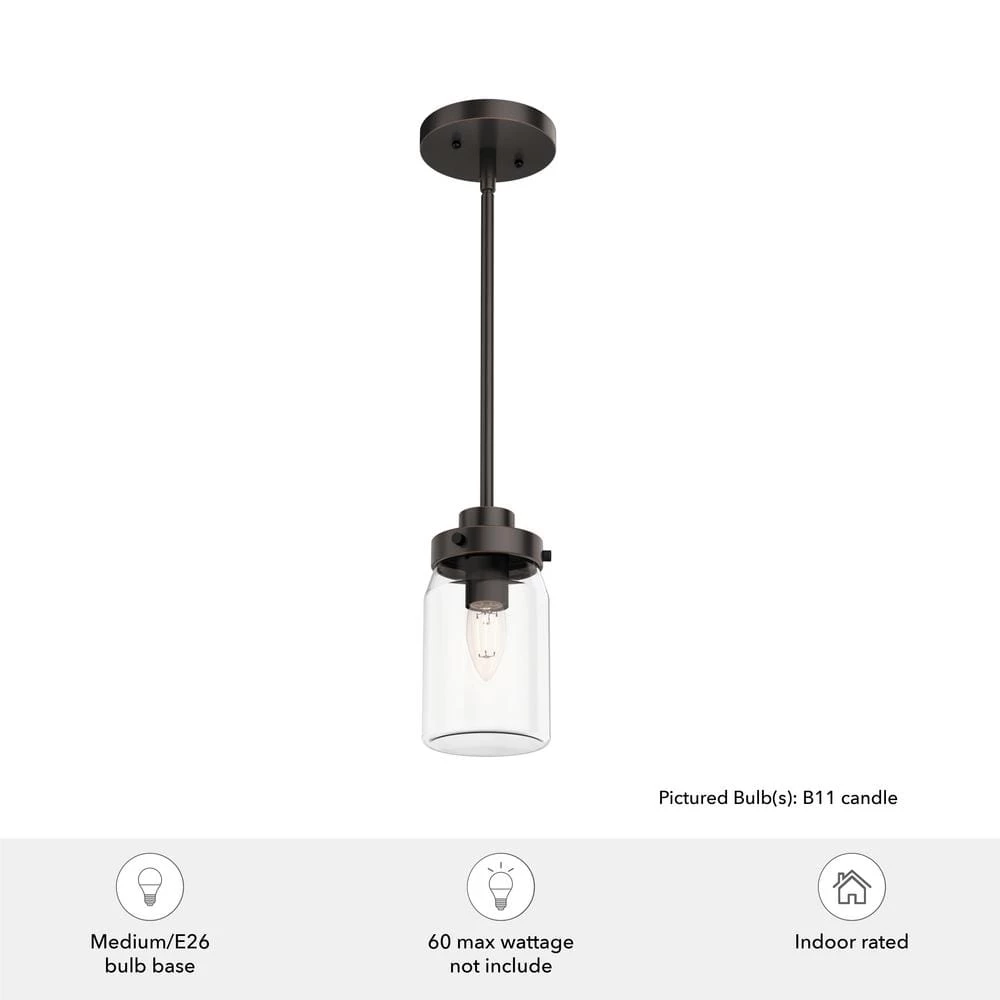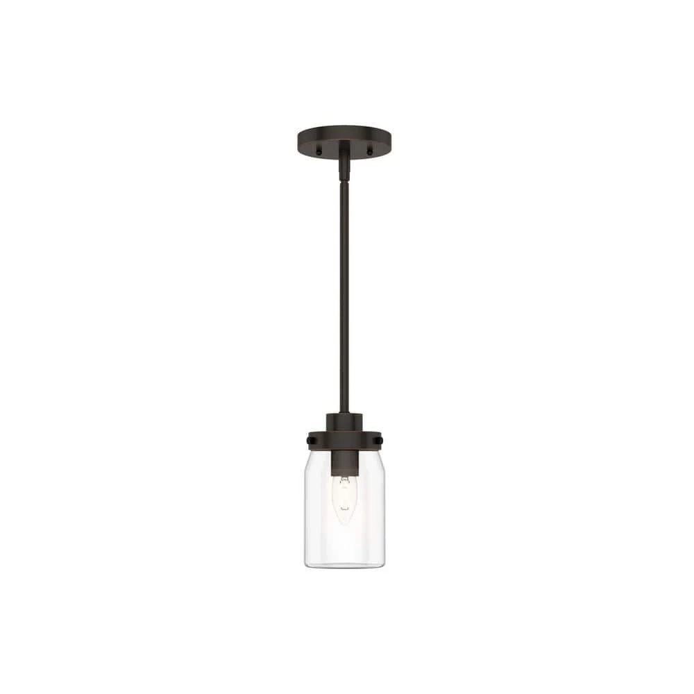 The Devon Park 1 Light Pendant creates an air of nostalgia in your home. Try adding vintage LED Edison bulbs with the rustic real-wood finishes and mason-jar inspired glass. Pair this Pendant with the Devon Park Chandelier and ceiling fan for a unified look in your home.
