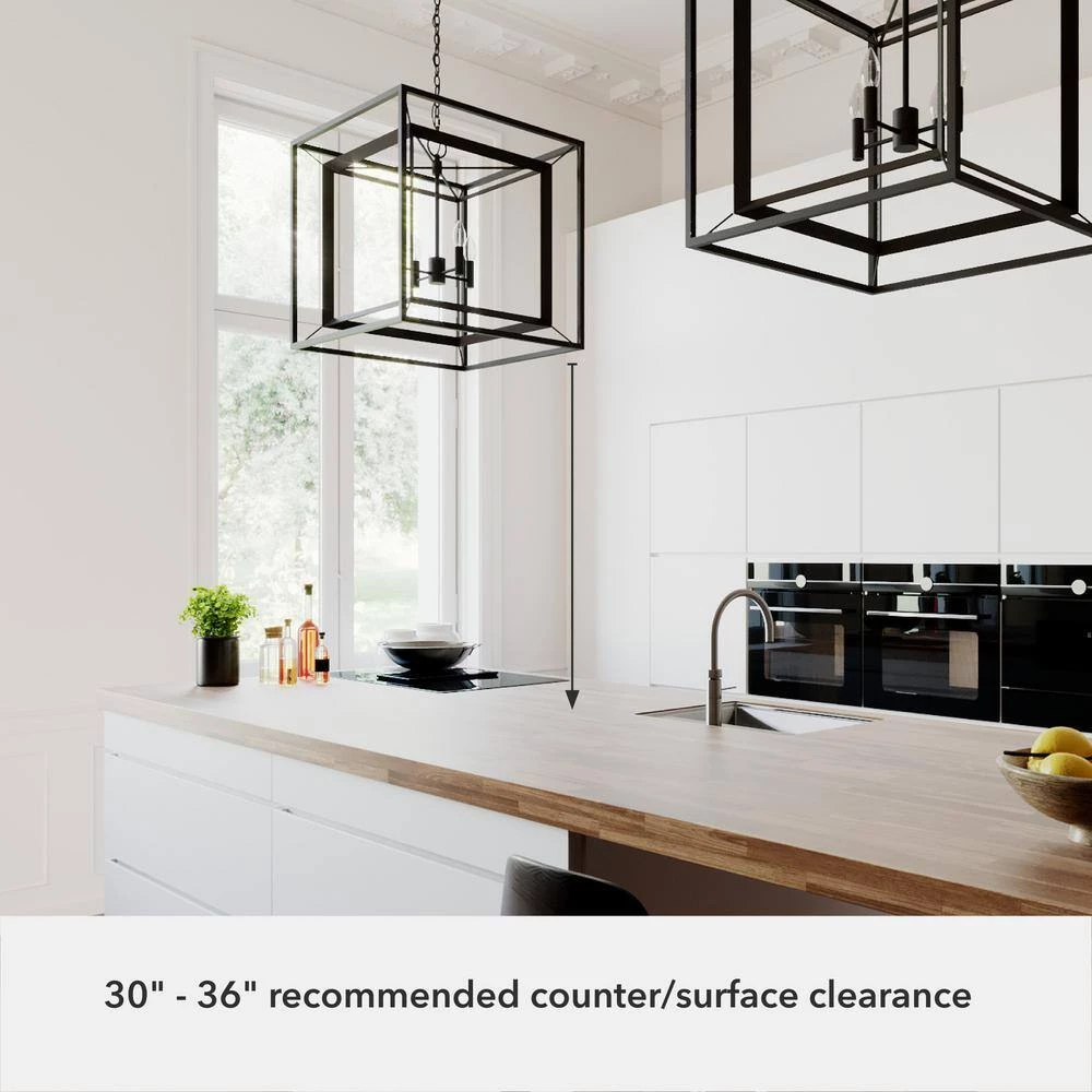 A striking statement piece that draws the eye up in living rooms with taller ceilings, the 24 in. Doherty 4-light lantern pendant will bring a modern aesthetic to your space while giving a focal point to your ceiling height. An elegant pendant with a clean, geometric design, the Doherty incorporates the modern aesthetic into a functional fixture. Install 2 over a long table or island for even more visual impact.