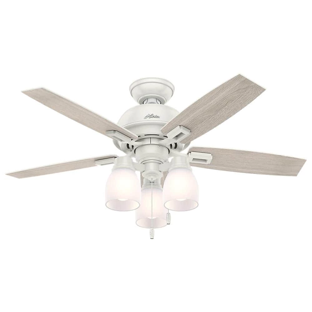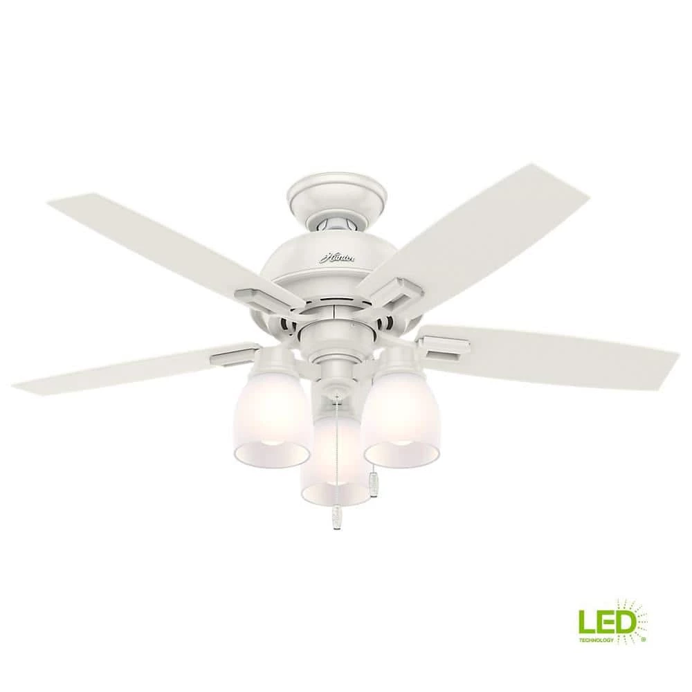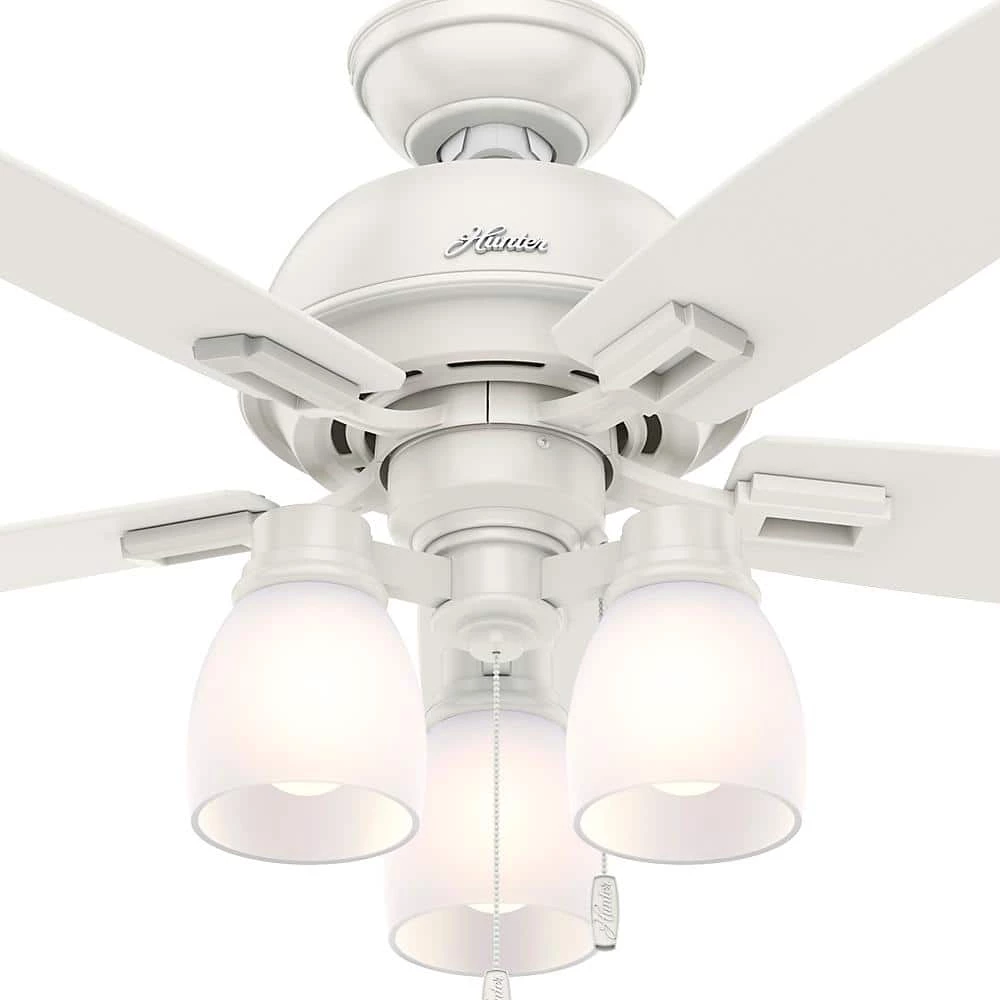 The Donegan boasts a sophisticated design with casual appeal. As part of the Hunter Designer Series, this fan showcases high-end finishes and rustic features making it a perfect accent in any room with a western home decor style. The powerful motor and 44 in. blades will keep the air moving in small rooms, and the high-efficiency, dimmable LED bulbs in the three-light fixture are fully adjustable for the perfect amount of light. The Donegan collection has a large variety of finishes, sizes, lighting options and more so you can carry a consistent design theme throughout every room in your home.