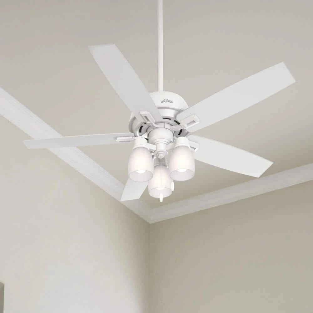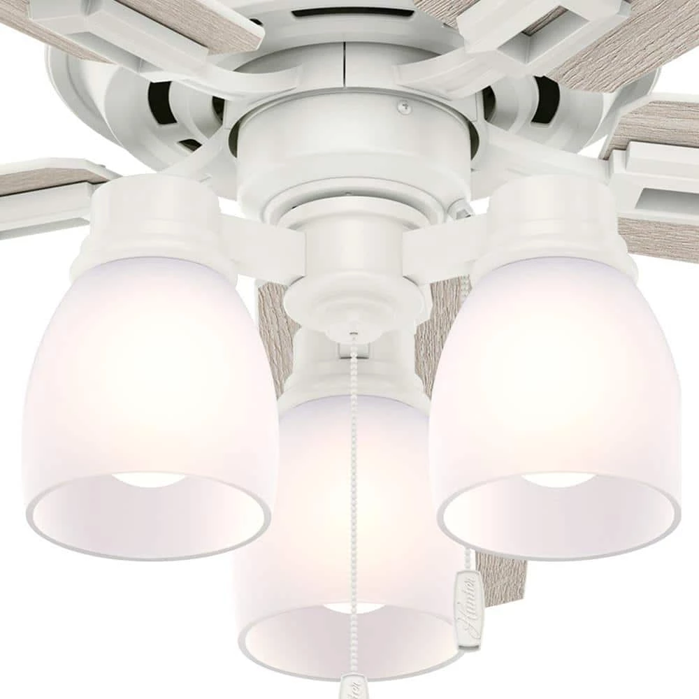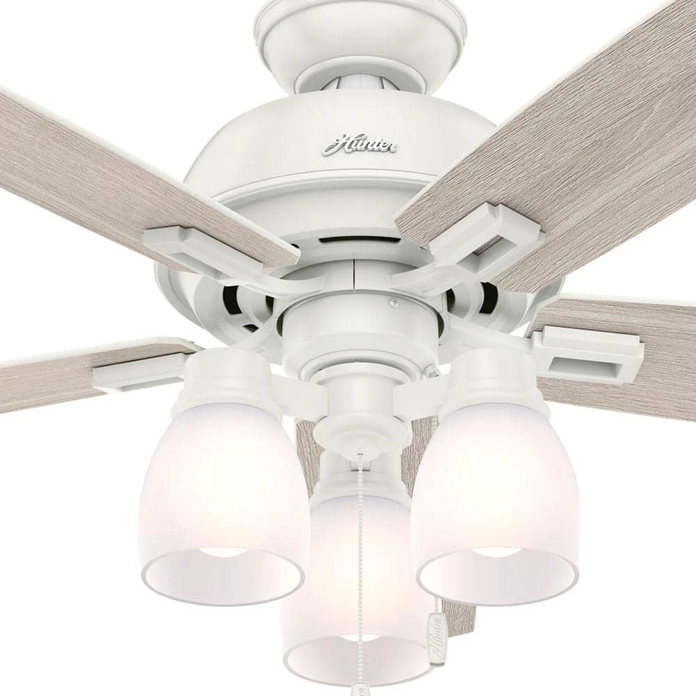 The Donegan boasts a sophisticated design with casual appeal. As part of the Hunter Designer Series, this fan showcases high-end finishes and rustic features making it a perfect accent in any room with farmhouse home decor style. The powerful motor and 52 in. blades will keep the air moving in your bedroom and living room and the high-efficiency, dimmable LED bulbs in the 3-light fixture are fully adjustable for the perfect amount of light. The Donegan collection has a large variety of finishes, sizes, lighting options and more so you can carry a consistent design theme throughout every room in your home.