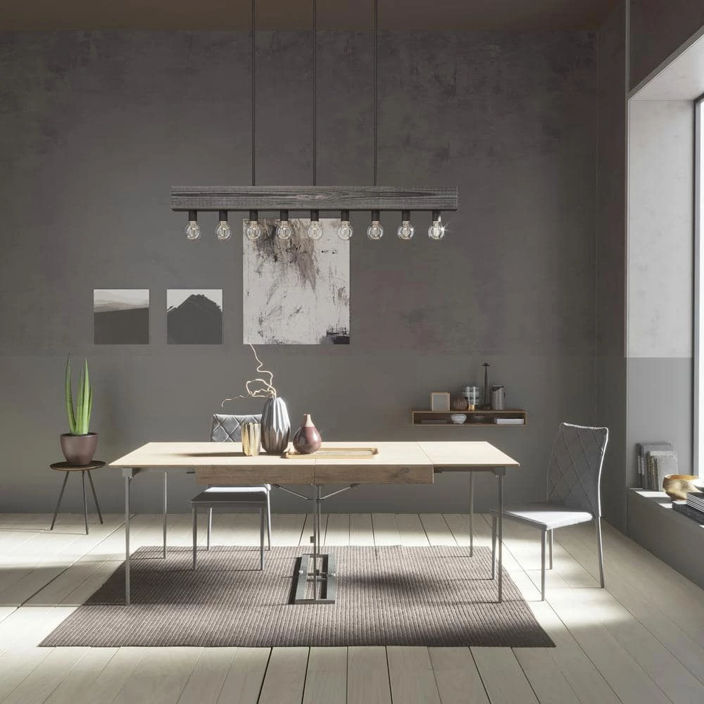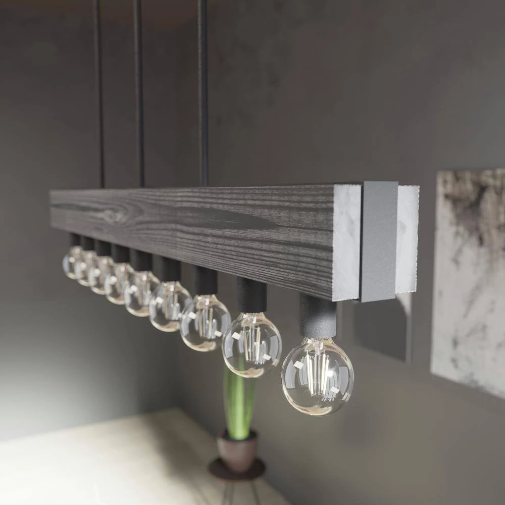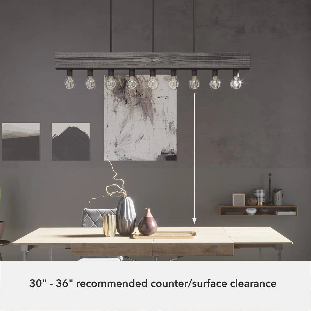 Stunning details and a grand scale. Evoking authenticity and artisanship, the Donelson 9-light linear chandelier features beautiful real wood finishes accented by metal detailing. It provides ample lighting and elevates the look of your space, particularly in modern industrial style rooms.