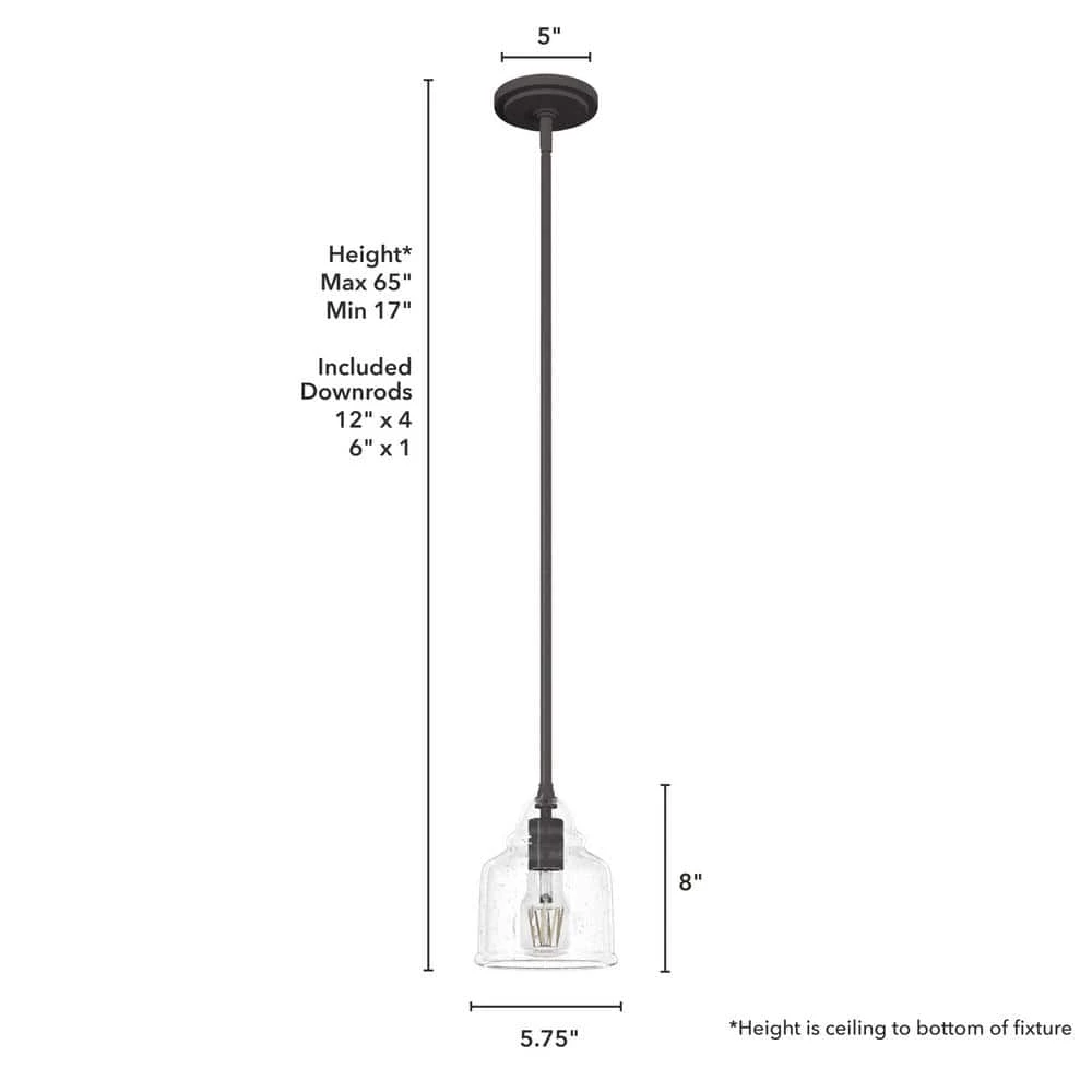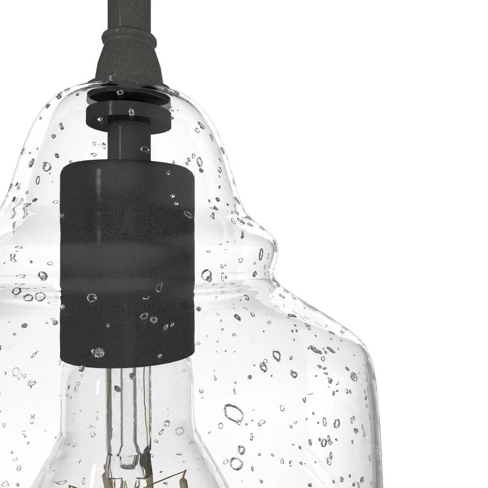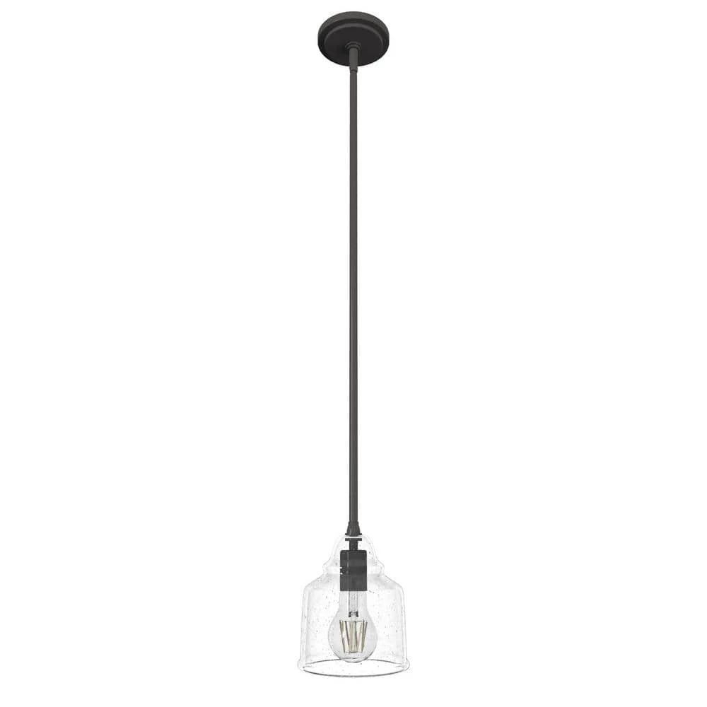 Dunshire 1-Light Noble Bronze Island Mini-Pendant Light with Clear Seeded Bell Glass Shade by Hunter