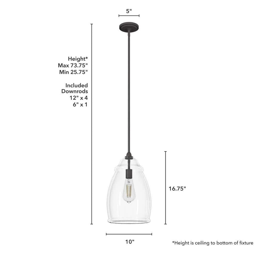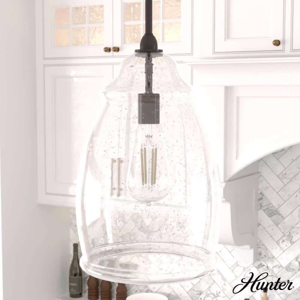 Dunshire 1-Light Noble Bronze Island Pendant Light with Clear Seeded Curved Vase Glass Shade by Hunter