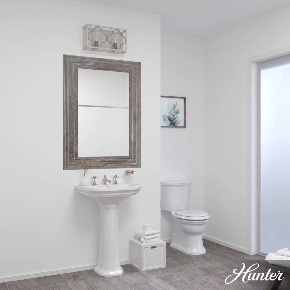The Gablecrest 2-light vanity will surely cure your bathroom’s morning blahs. Stunning architectural details and distressed finishes give it an authentic look that’s at home in modern farmhouse and French Country spaces. Tie your space together with other fixtures from the Gablecrest Collection.