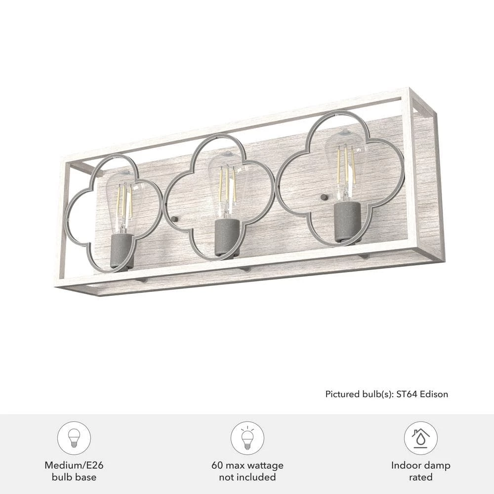European influences. Artful architecture. There’s something elegant yet authentic about the Gablecrest 3-light vanity’s design that brings charm to any space. Its quatrefoil details soften up modern farmhouse spaces and emphasize French Country style. with a damp rating, it’s the perfect way to add style to your bathrooms.