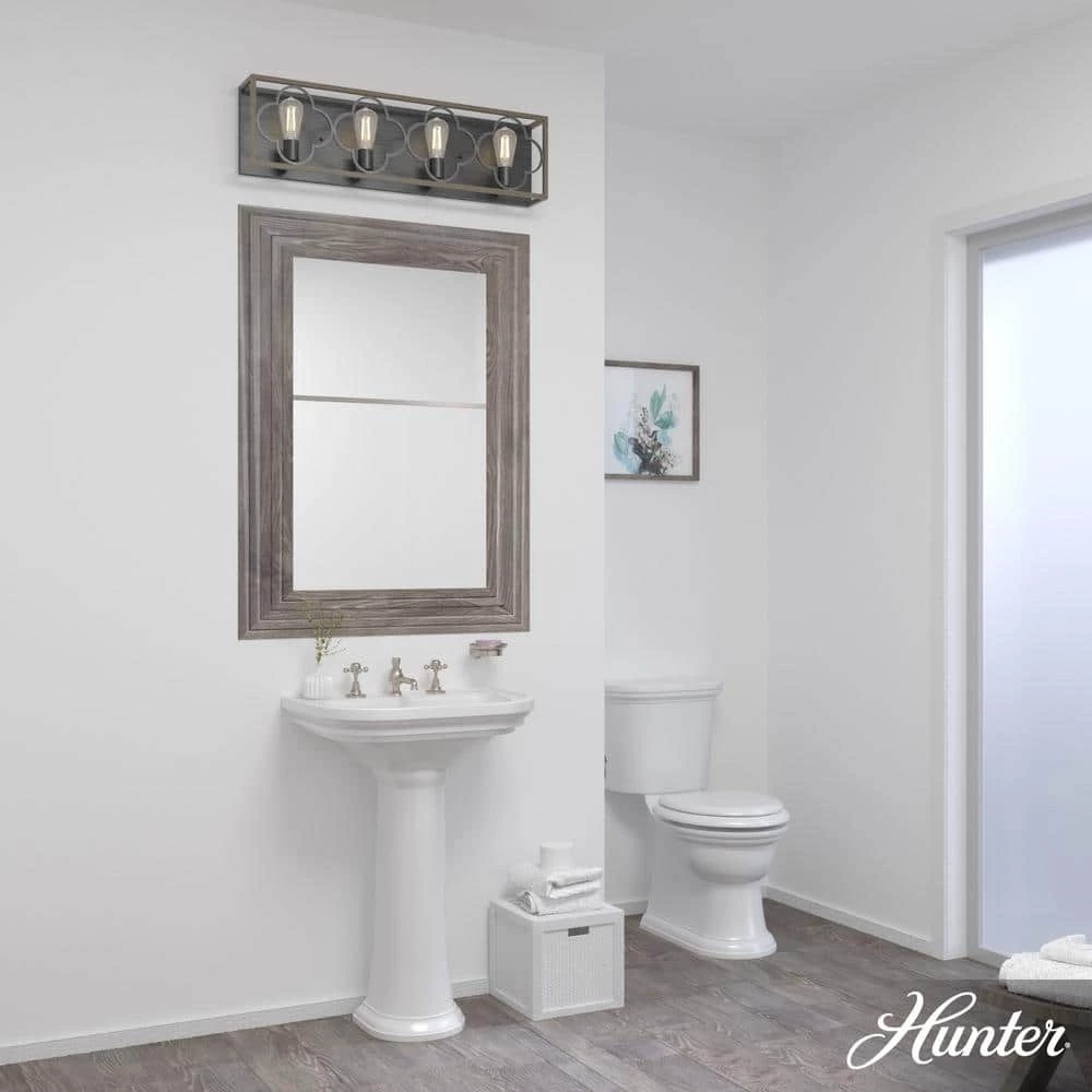 Ample opportunity for light. Artistic details for days. CoupLED with its damp rating, the Gablecrest 4-light vanity is the perfect light fixture for your bathrooms. Its distressed finishes and European design influences add to the authentic look of modern farmhouse and French Country style spaces.