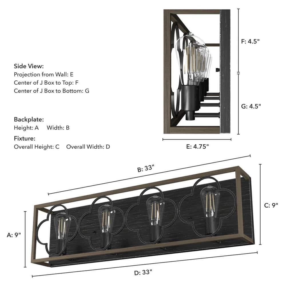 - Fixture size: 4.75 in. W, 33 in. L, 9 in. H, 12.75 lbs.