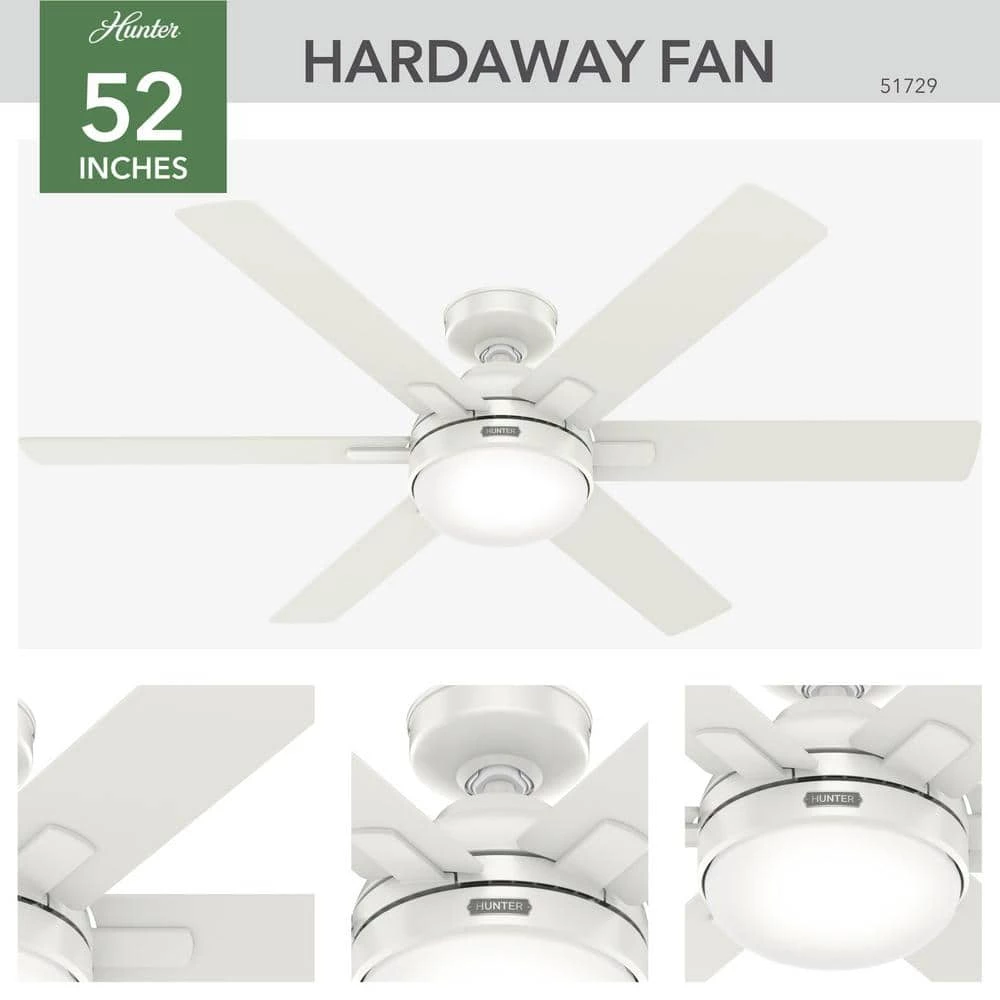 Featuring our exclusive SureSpeed Technology, the Hardaway modern ceiling fan delivers optimized, high-speed cooling. Control the dimmable, integrated LED light and fan speed with the included handheld remote control, this indoor ceiling fan with light features our WhisperWind motor technology for quiet, powerful performance. With a 52-inch blade span, the Hardaway large ceiling fan is the perfect fit in living rooms, bedrooms and bonus rooms.