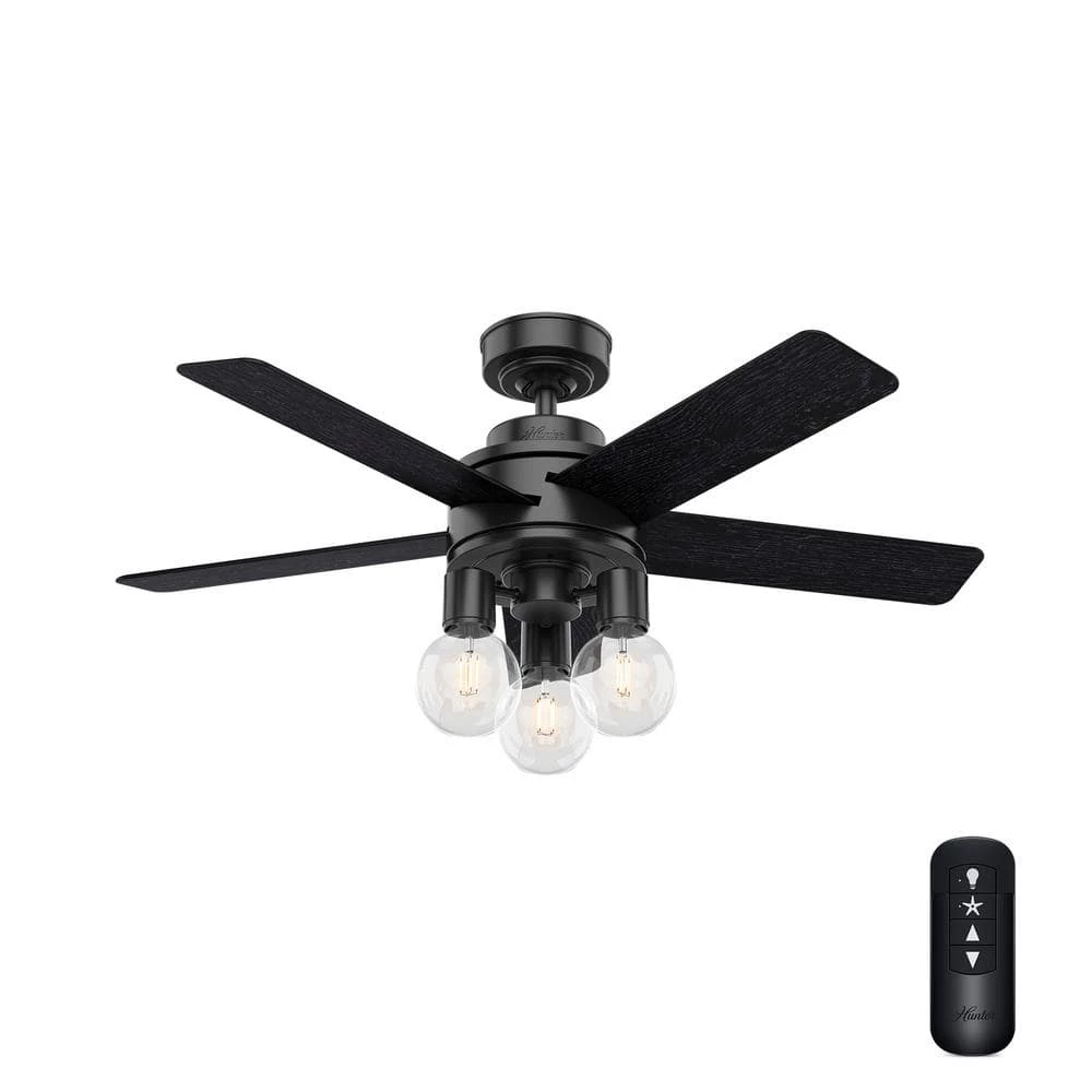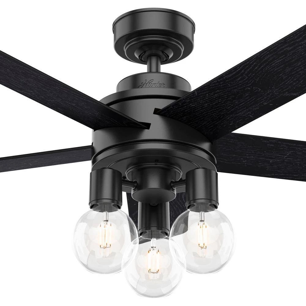 The Hardwick ceiling fan with light is an elevated take on the classic ceiling fan design. Its modern form with clean lines and the updated, traditional light fixture with round Edison LED bulbs provides a unique look in indoor spaces. The Matte Black finish complements dark hardware and accents in modern industrial and farmhouse spaces, while the Matte Nickel and Fresh White finishes add a subtle statement in casual rooms. It’s 44 in. blade span makes it an ideal fit in small rooms like home offices and guest bedrooms.