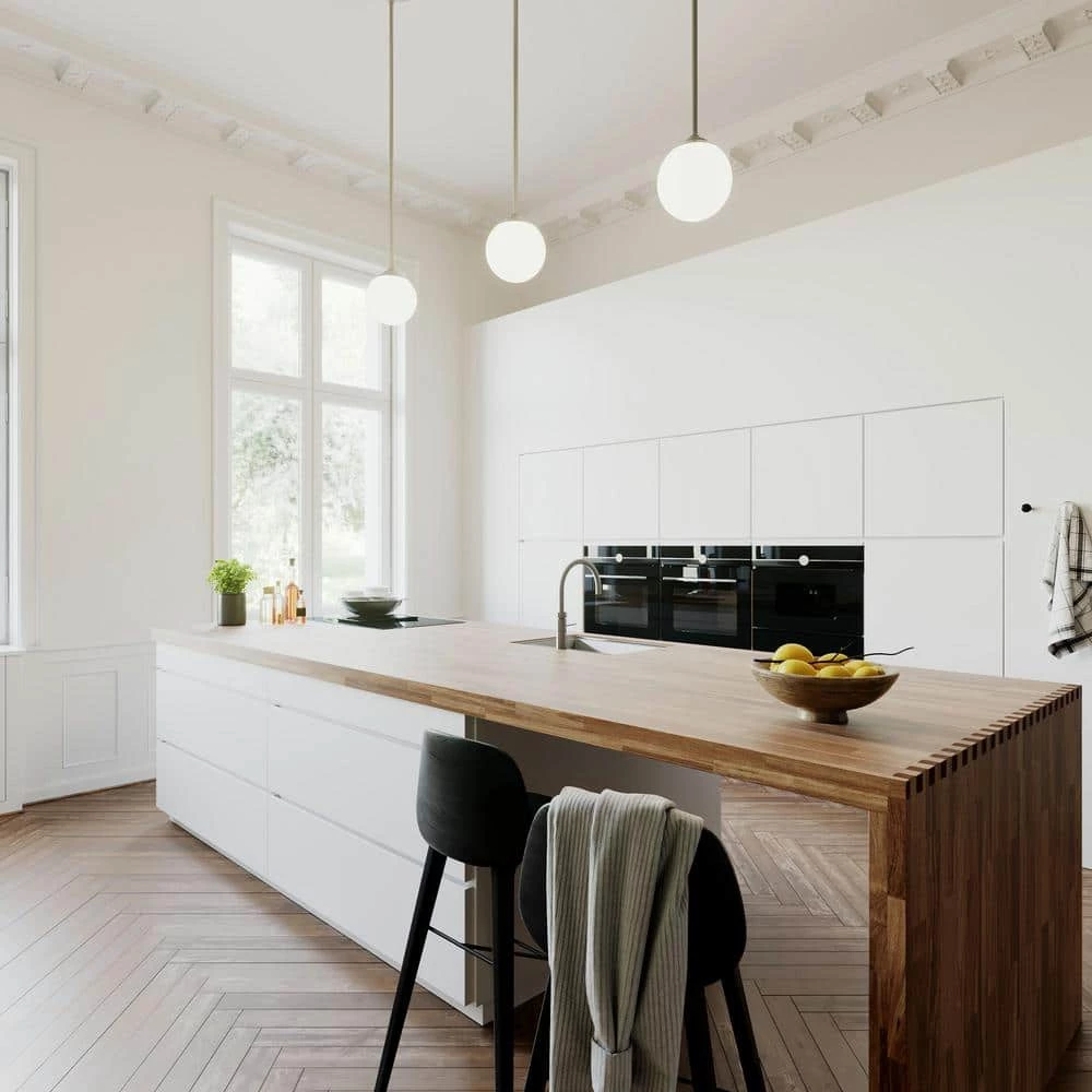 - PREMIUM DESIGN: a formal modern design with attractive brushed nickel finish and premium cased white glass shading perfect for illuminating kitchens, living rooms, foyers, nooks, and dining areas