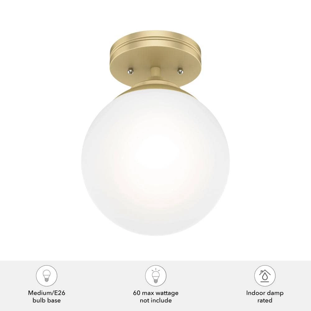 The Hepburn Collection exemplifies modern design while also capturing the essence of the 1920s. The Hepburn 1 Light Flush Mount graces rooms with its cased white globe and modern brass detailing. Pair this flush mount with the other members in the Hepburn Collection for a completed look.