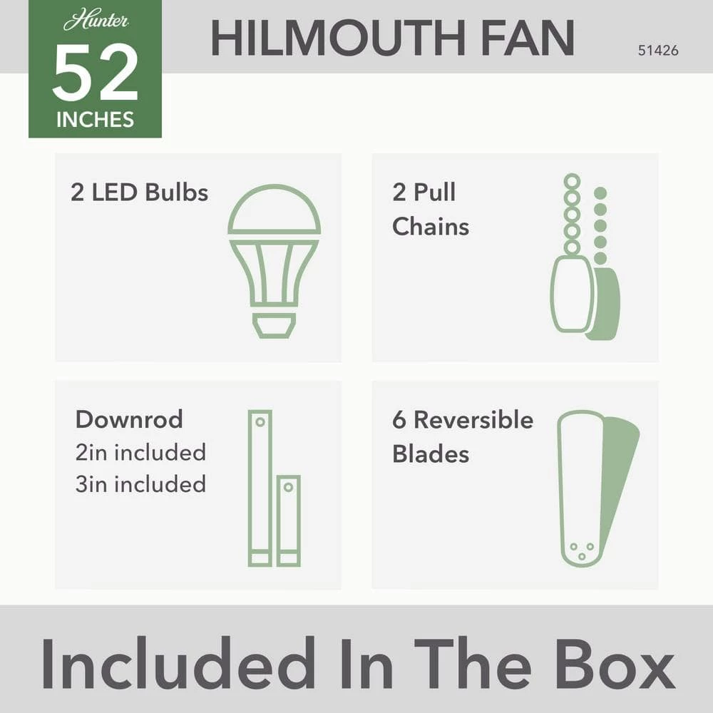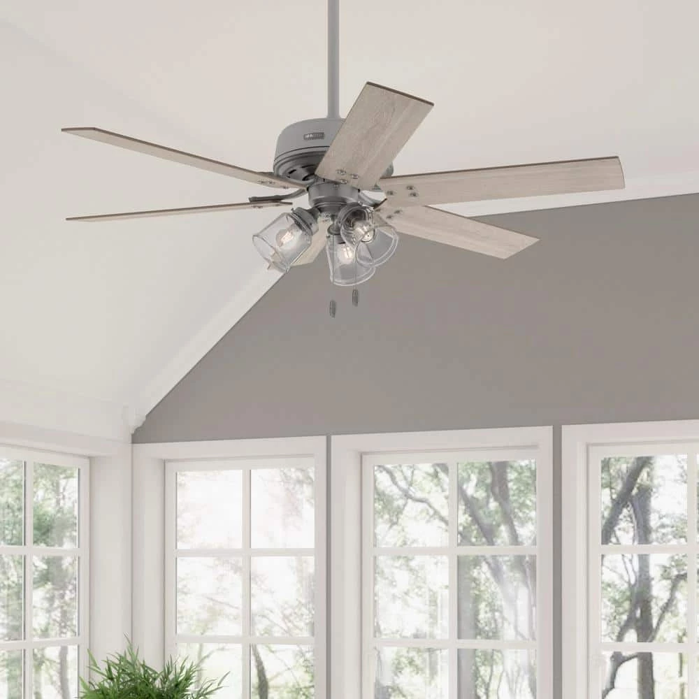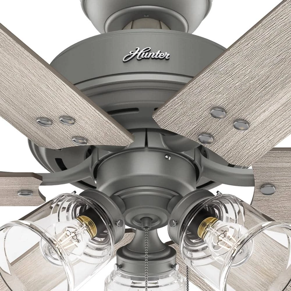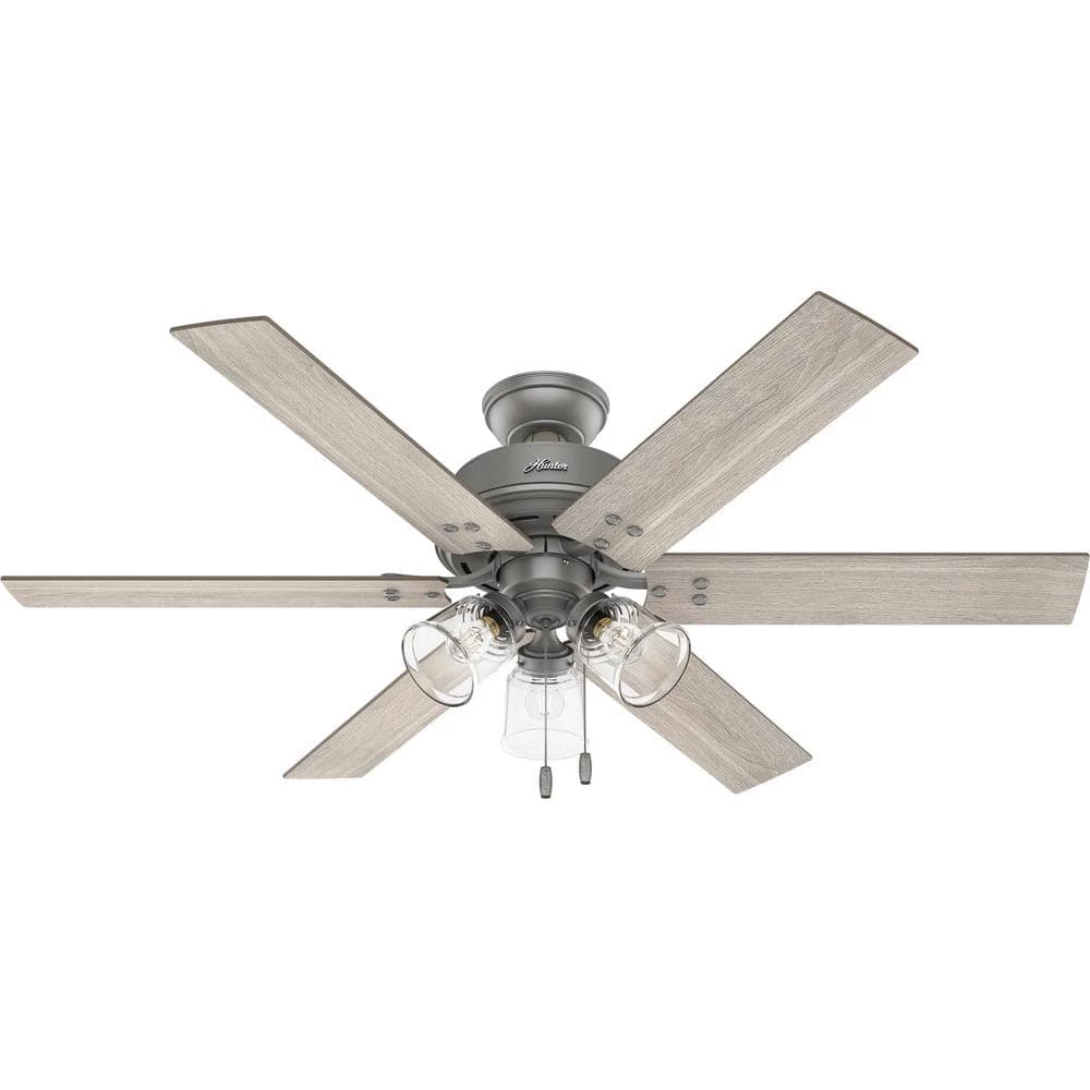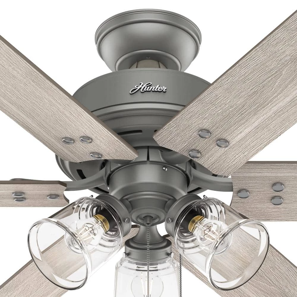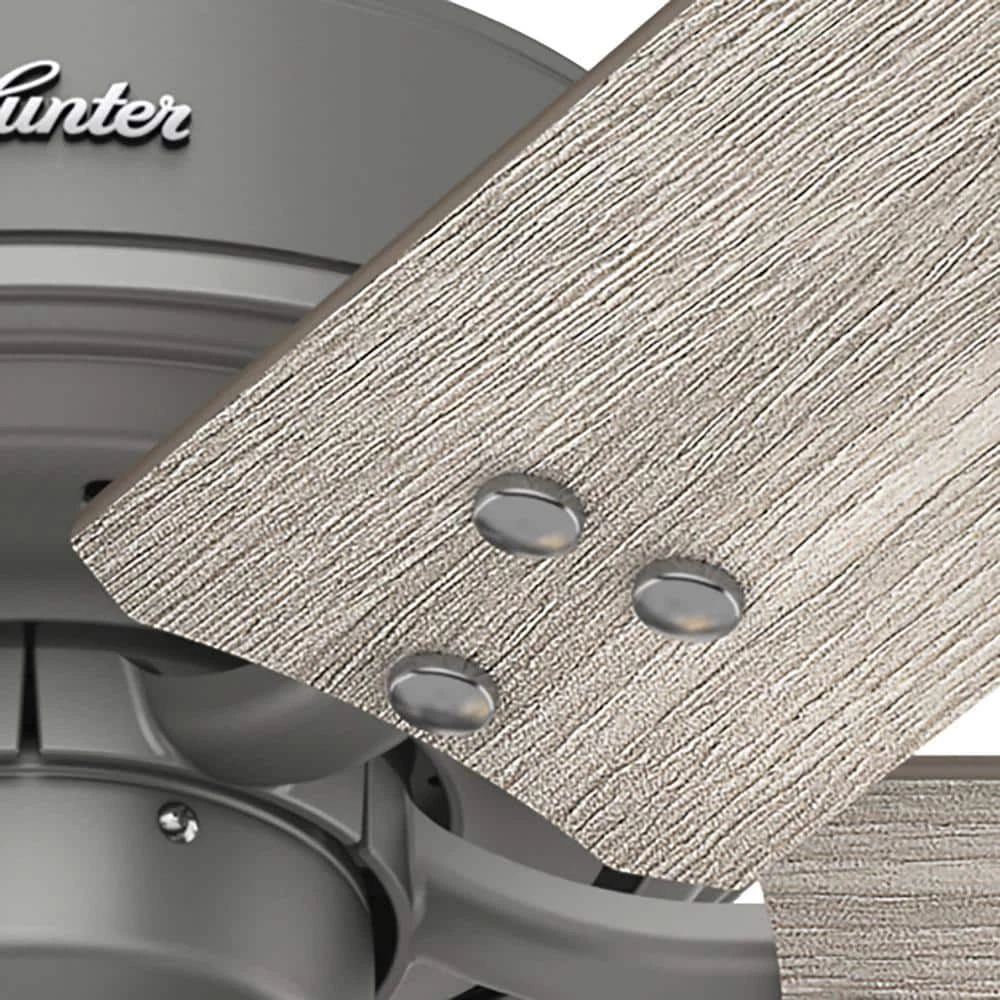 The proof of the Hilmouth’s beauty is all in the details. This fan’s subtle finishes and clear glass light fixtures add an elegant touch to large indoor spaces. These design details make it ideal for both farmhouse and modern industrial-style rooms alike. Regardless of where you install it though, the Hilmouth brings you powerful performance with its WhisperWind motor.