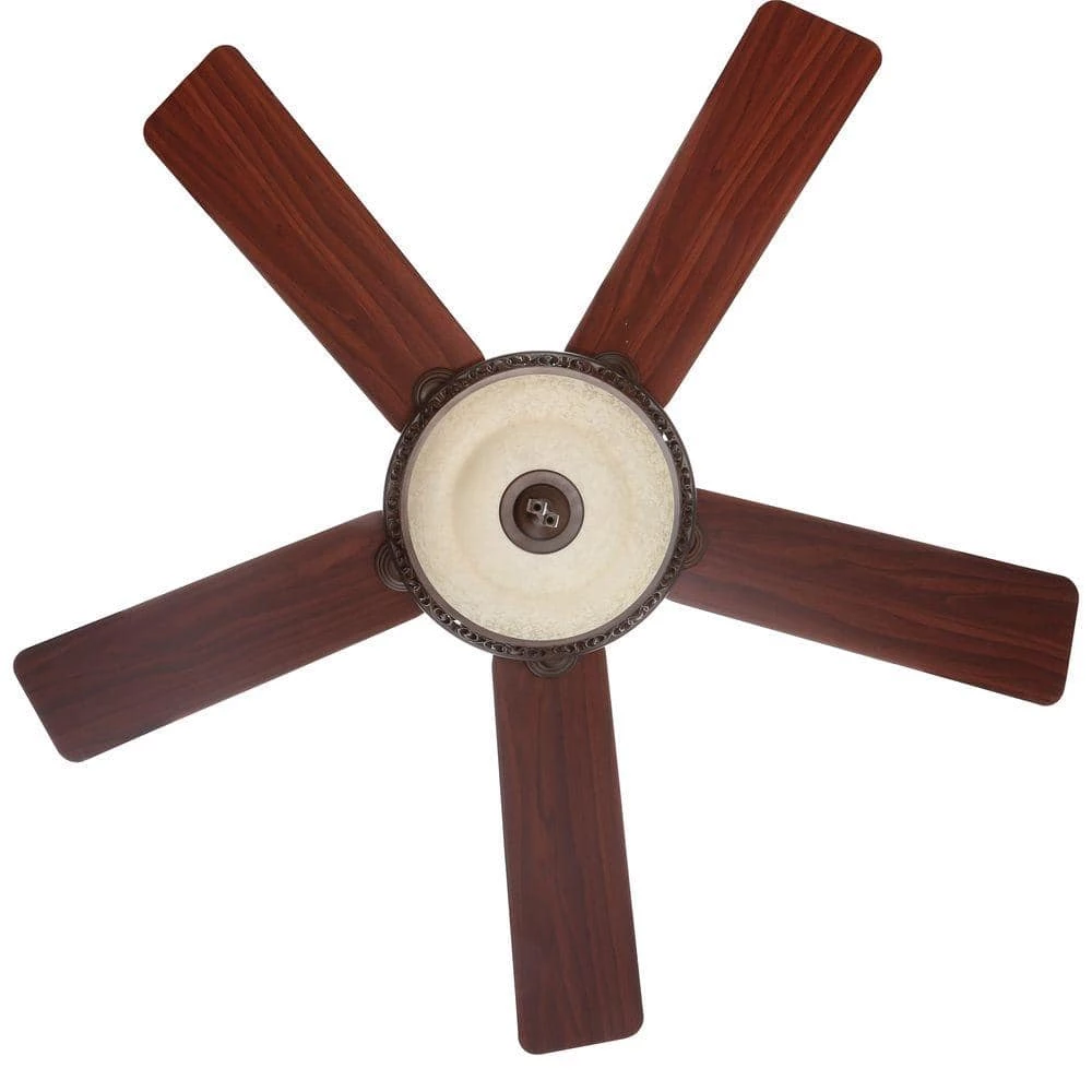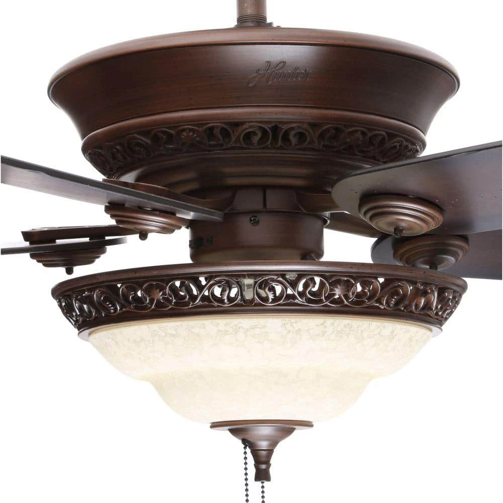 The Hunter Italian Countryside 52 in. Cocoa Ceiling Fan has five reversible blades with beautiful wood finishes and an elegant glass bowl light fixture. The fan’s motor operates quietly and efficiently. The appealing style of the fan gives your home a touch of rustic Italian decor.