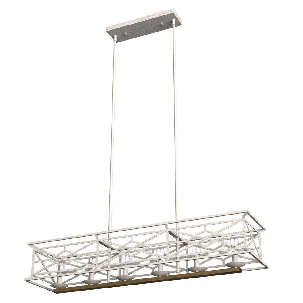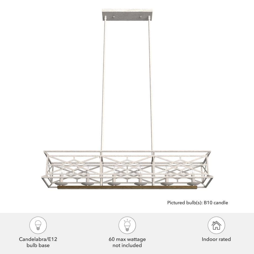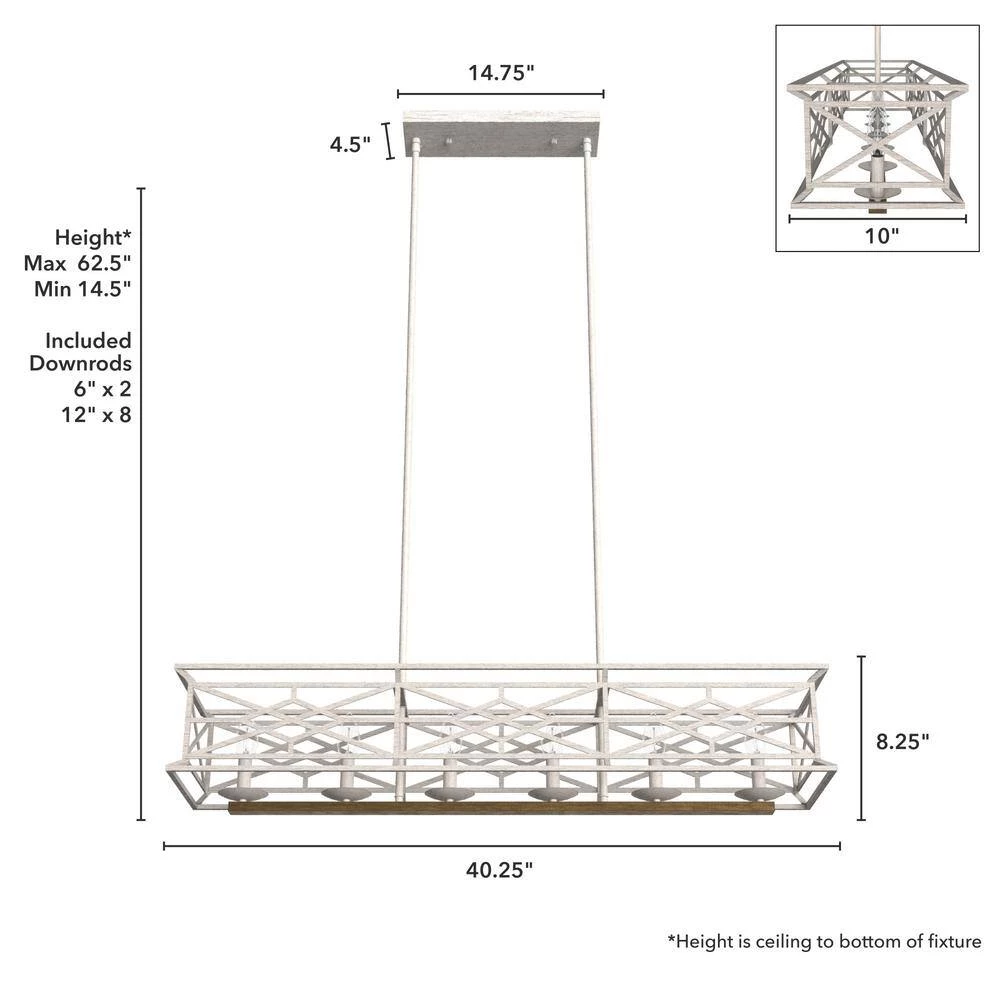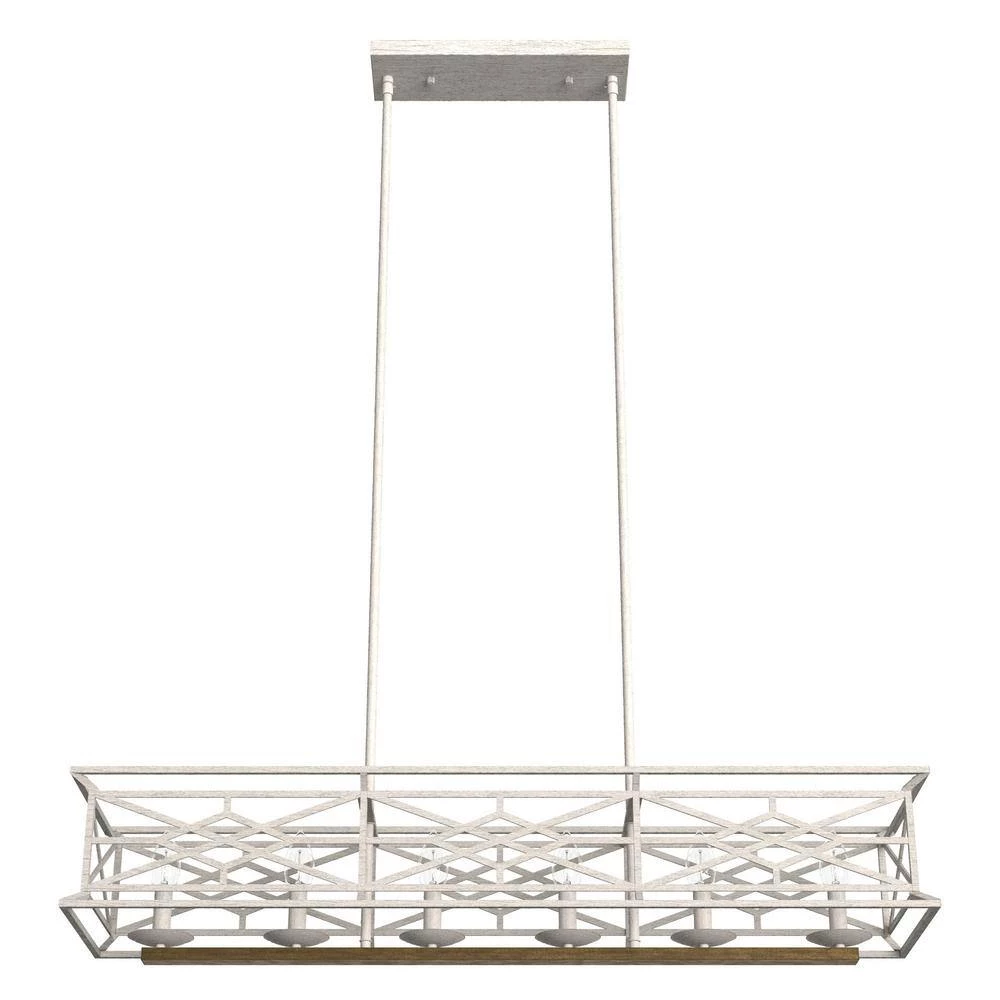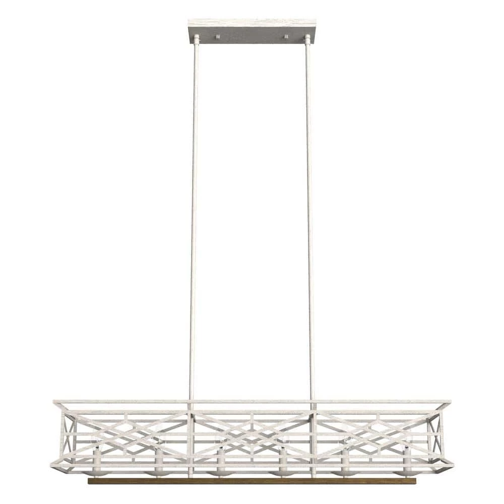 Vintage design meets modern materials. The Langwood linear chandelier is a showstopper, with its latticework frame and intricate welding. It draws inspiration from Chippendale furniture and Rococo designs. Create a cohesive look in your space by pairing this chandelier with other fixtures from the Langwood collection.