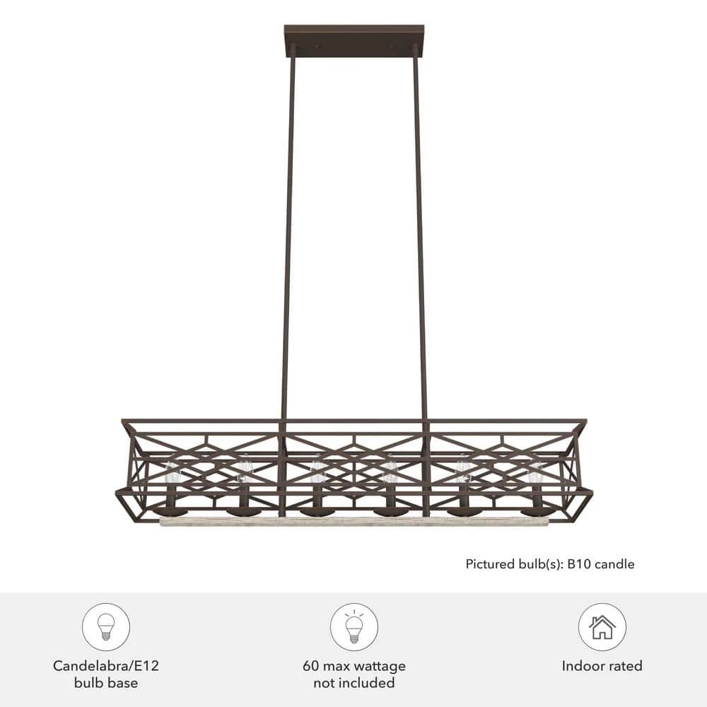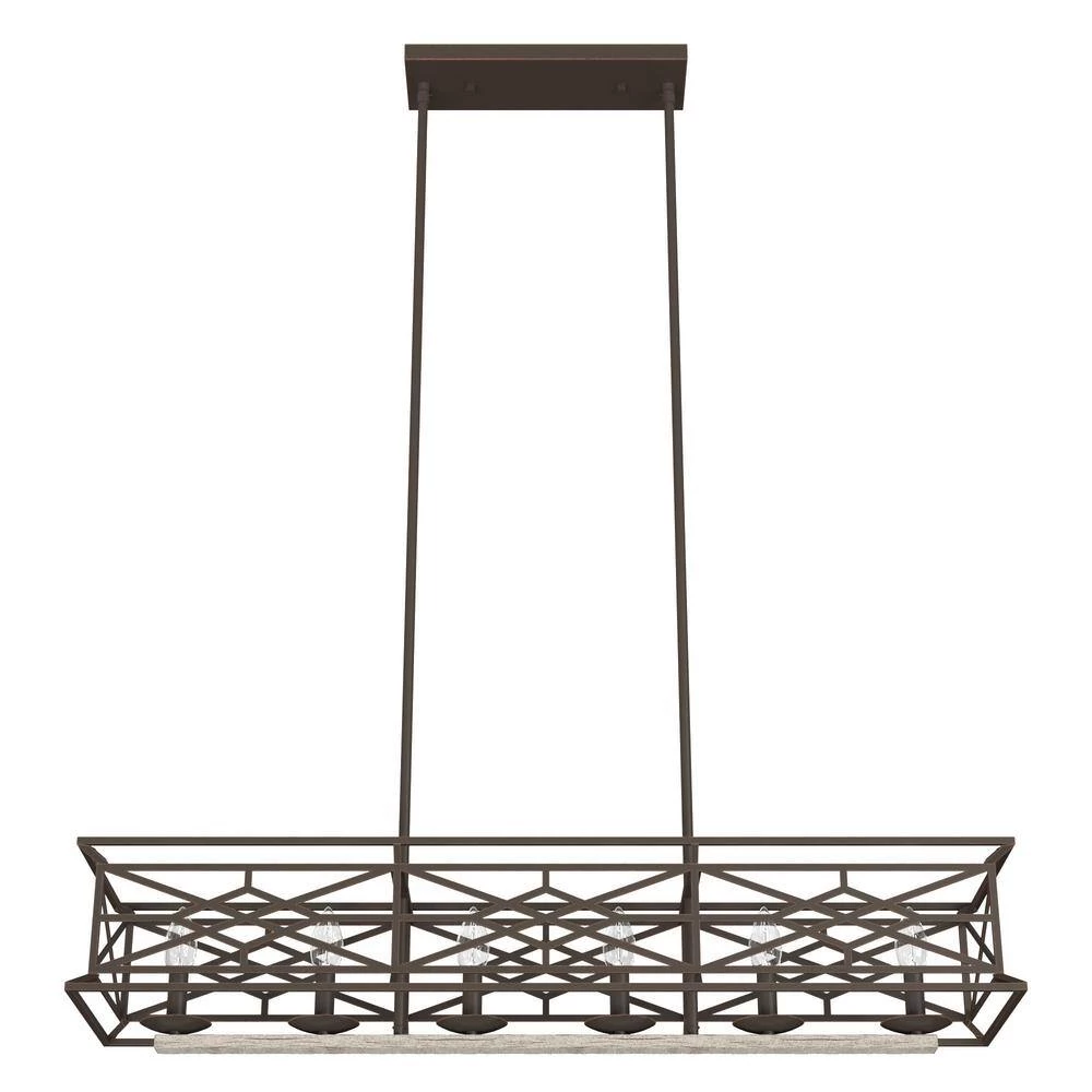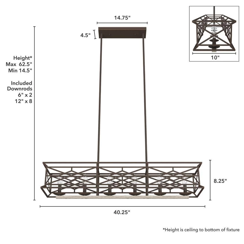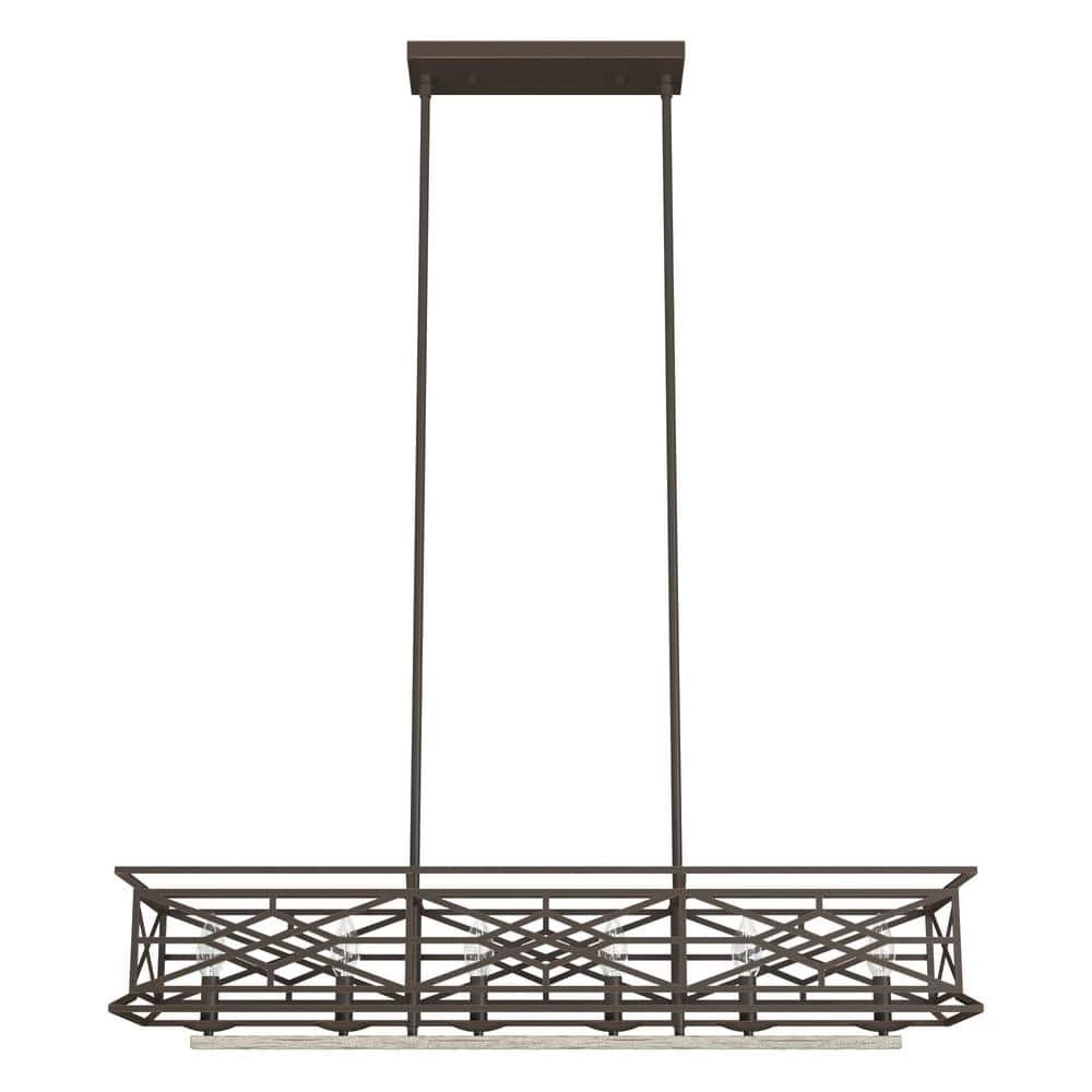 Vintage design meets modern materials. The Langwood linear chandelier is a showstopper, with its latticework frame and intricate welding. It draws inspiration from Chippendale furniture and Rococo designs. Create a cohesive look in your space by pairing this chandelier with other fixtures from the Langwood collection.