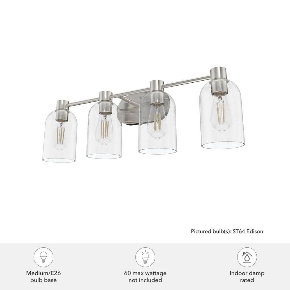 Make your mornings brighter and more stylish with modern vanity lighting like the Lochemeade. The 4-light option gives you ample opportunity for light output while also showcasing the beautiful glass domes. From clear seeded glass to smoked glass, the Lochemeade offers a variety of finishes that help express your style.