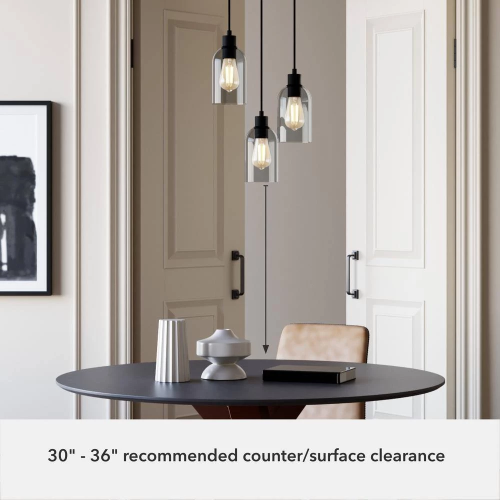 The little black dress of lighting. The minimalist modern design of the Lochemeade round cluster is versatile, featuring striking yet simple clear dome shades. Enjoy 3 glass pendant lights with 1 installation, perfect for small spaces like kitchenettes or for a unique alternative to chandeliers above dining tables.