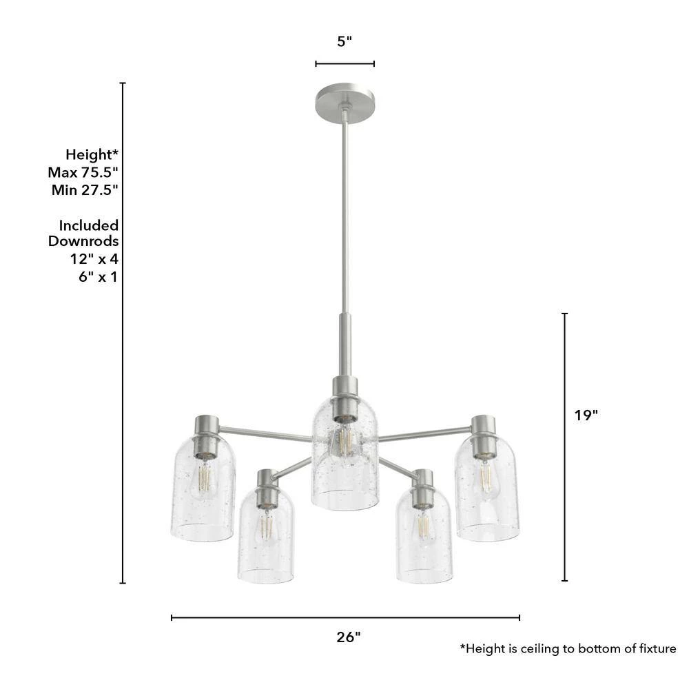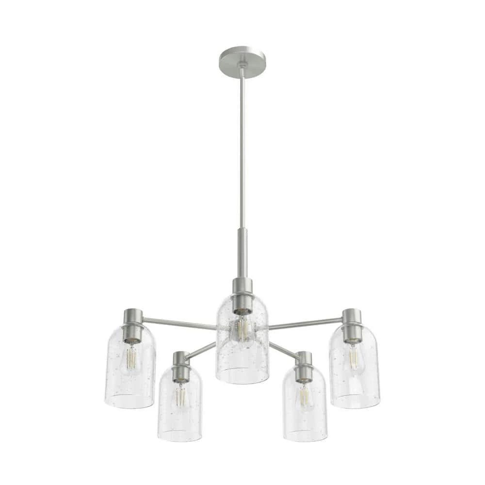 Simple yet magnificent, the Lochmeade 5-light chandelier features clear glass dome shades that leave an impression without being overpowering. Its minimalist design makes this modern chandelier versatile and able to enhance a variety of style spaces. This chandelier has a natural iron finish.