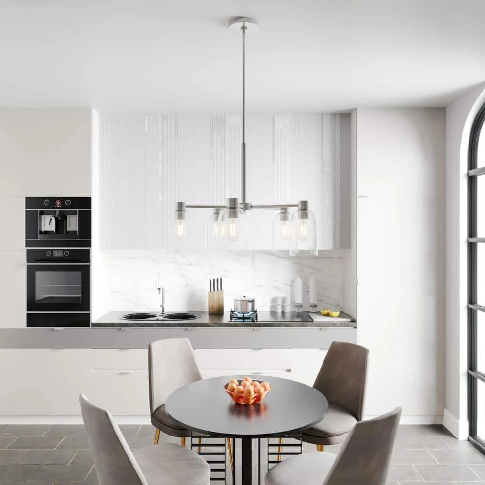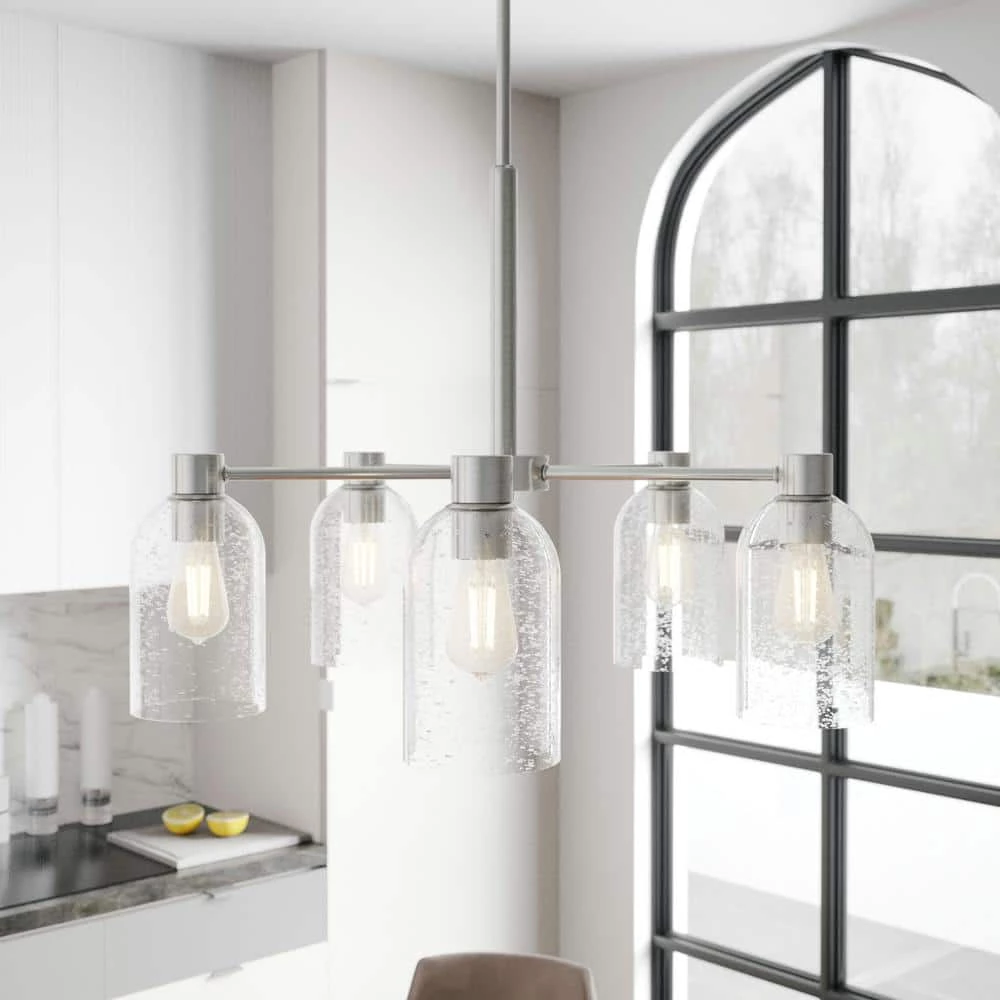 - PREMIUM DESIGN: a formal modern design with attractive brushed nickel finish and premium seeded glass shading perfect for illuminating kitchens, living rooms, foyers, nooks, and dining areas