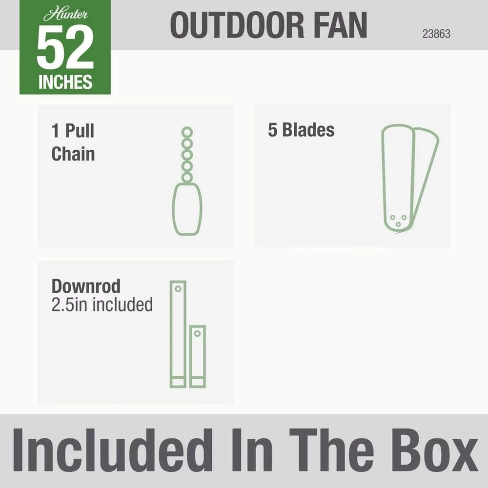 This Hunter Original is damp-rated and ideal for enclosed porches, covered patios, greenhouses and more. It also has a one-of-a-kind Hunter Original motor that promises years of quiet, trouble-free operation. This powerful motor features a cast-iron housing and a unique oil bath lubrication system that constantly lubricates bearings, virtually eliminating noise and wear.