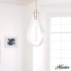 Van Nuys 1 Light Brushed Nickel Wall Sconce with Clear Glass Shade Bathroom Light by Hunter