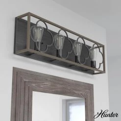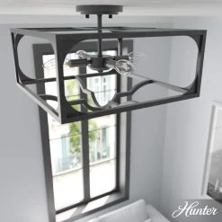 Highland Hill 16 in. 4 Light Rustic Iron Semi Flush Mount Bedroom Light by Hunter