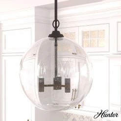 High Oaks 3-Light Noble Bronze Globe Pendant Light with Clear Seeded Glass Shade by Hunter