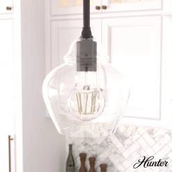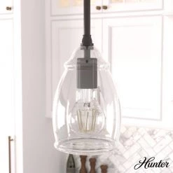 Dunshire 1-Light Noble Bronze Island Mini-Pendant Light with Clear Curved Vase Glass Shade by Hunter