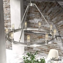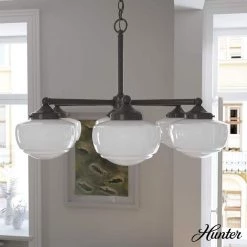 Saddle Creek 6-Light Noble Bronze Schoolhouse Chandelier with Cased White Glass Shades by Hunter