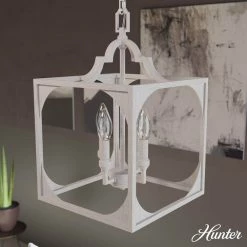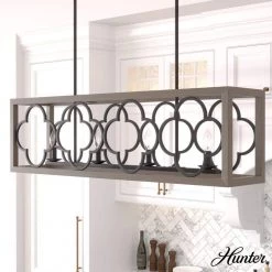 Gablecrest 3 Light French Oak Linear Chandelier with Metal Shades Kitchen Light by Hunter