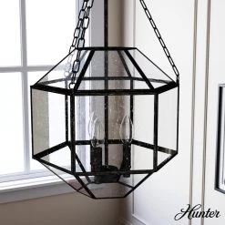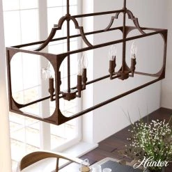 Devon Park 3 Light Brushed Nickel Island Pendant Light with Clear Glass Shade Foyer Light by Hunter