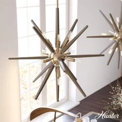 High Oaks 3-Light Alturas Gold Globe Pendant Light with Clear Seeded Glass Shade by Hunter