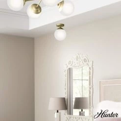 Hepburn 1 Light Modern Gold Brass Flush Mount Bedroom Light by Hunter