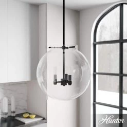 Lochemeade 3 Light Natural Iron Shaded Chandelier with Smoked Glass Shades Kitchen Light by Hunter