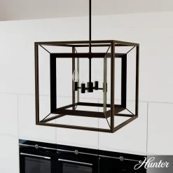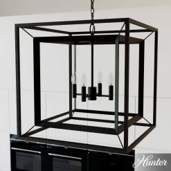 Dukestown 1-Light Natural Iron Lantern Pendant Light with Silver Lead Detail by Hunter