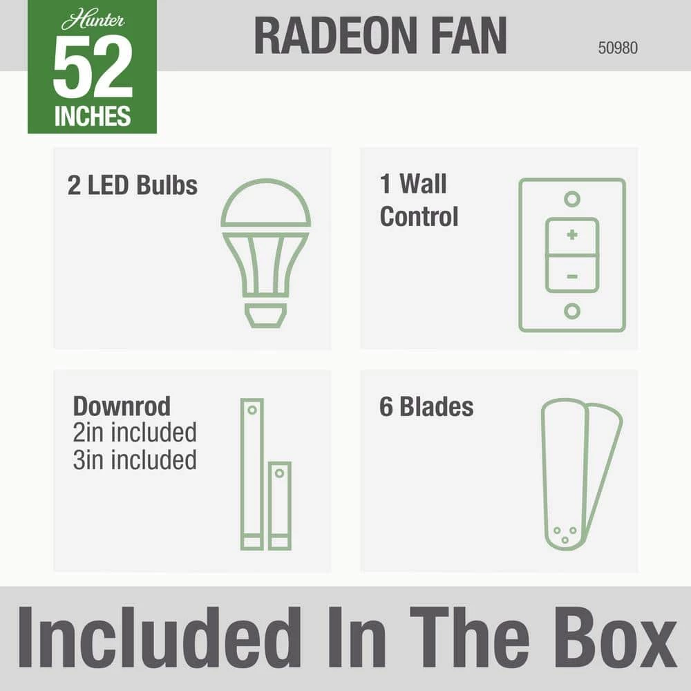 - Downrods: includes 2-in. and 3-in. downrods to ensure proper distance from the ceiling and optimize air movement
