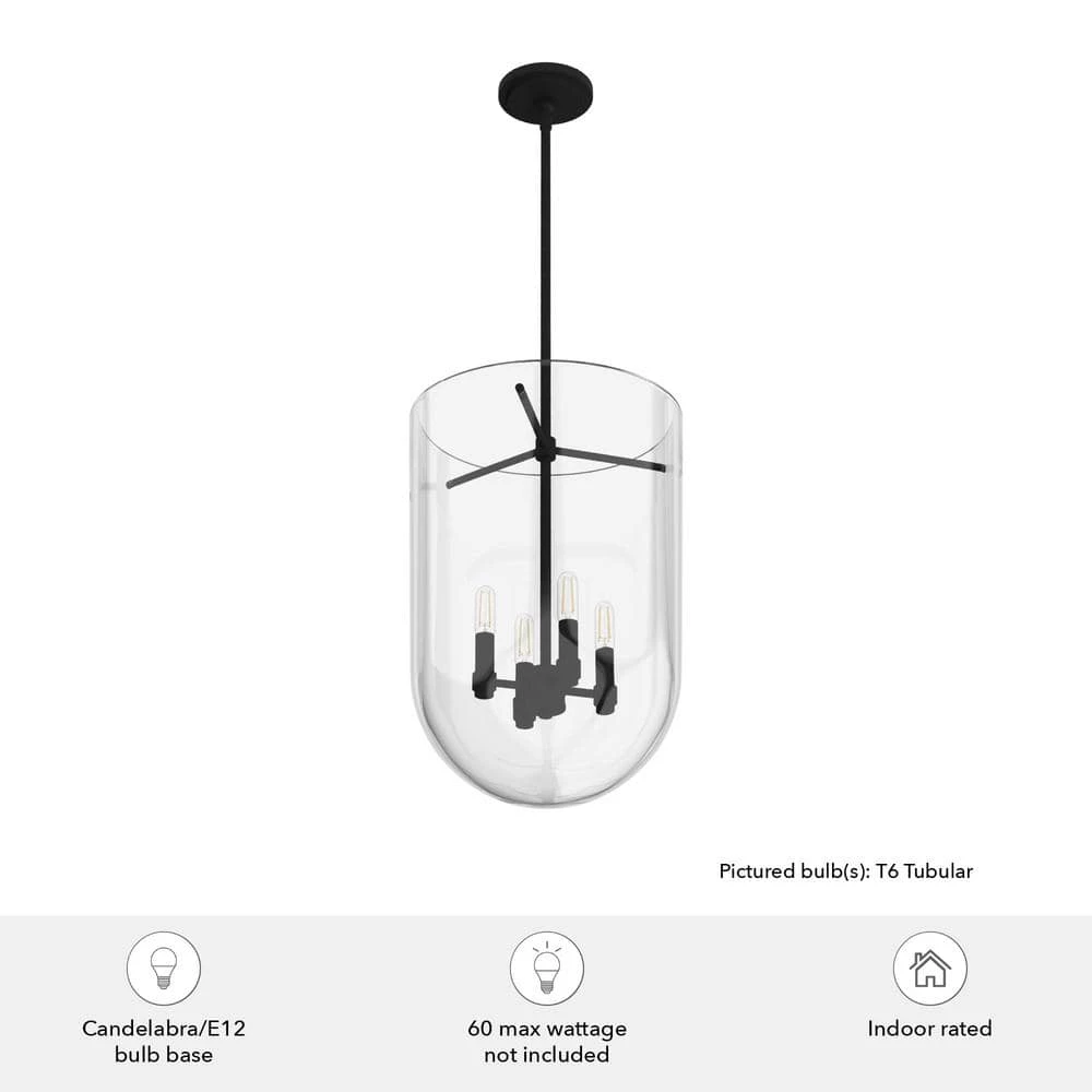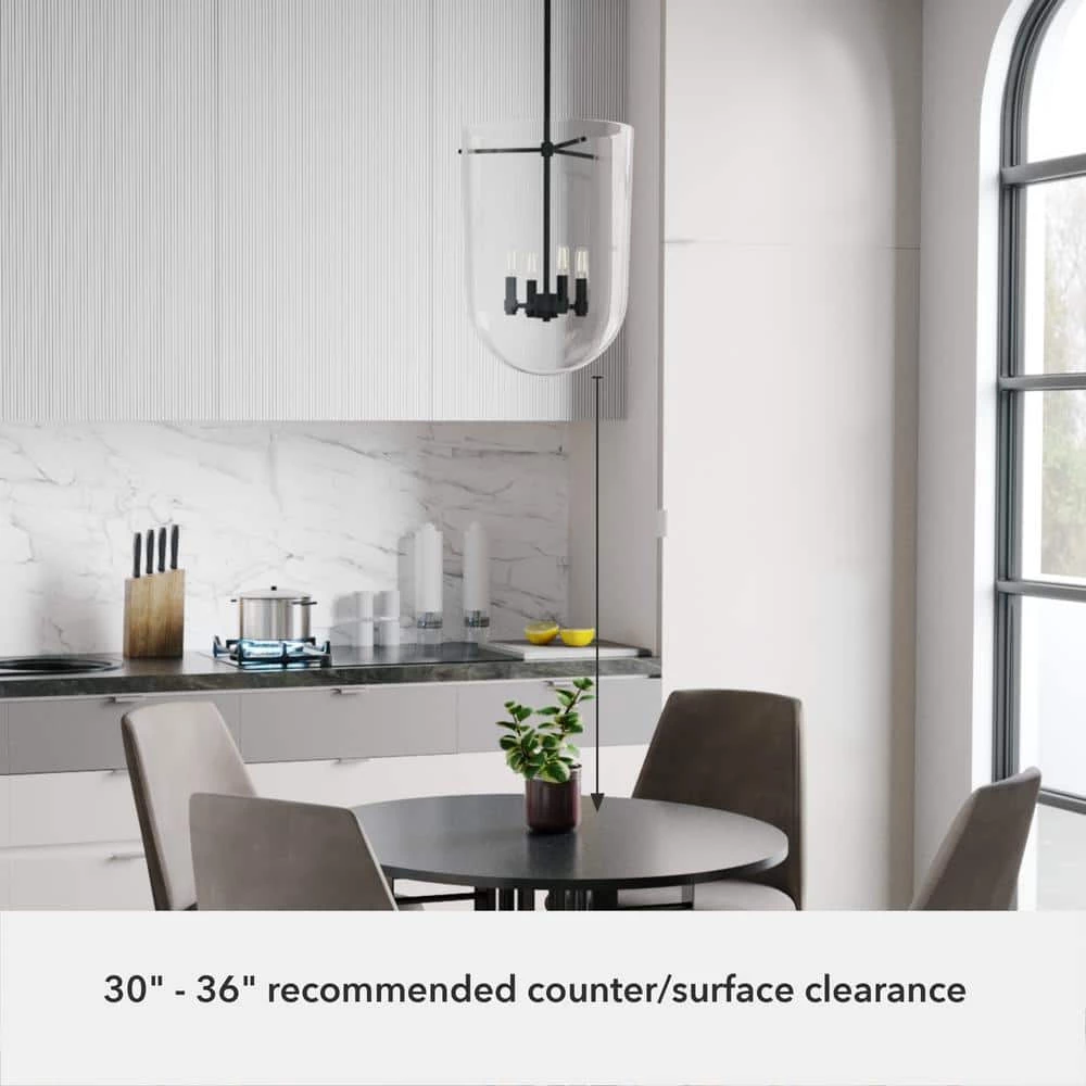 A twist on dramatic lighting. The Sacha 4-light pendant takes elements from cathedral-style lighting and adds its own modern flair. With its glamorous clear glass and bold lines, this bell-shaped pendant adds a sophisticated element to your space. Whether it is standing on its own or used in pairs, the Sacha pendant makes an elegant statement.