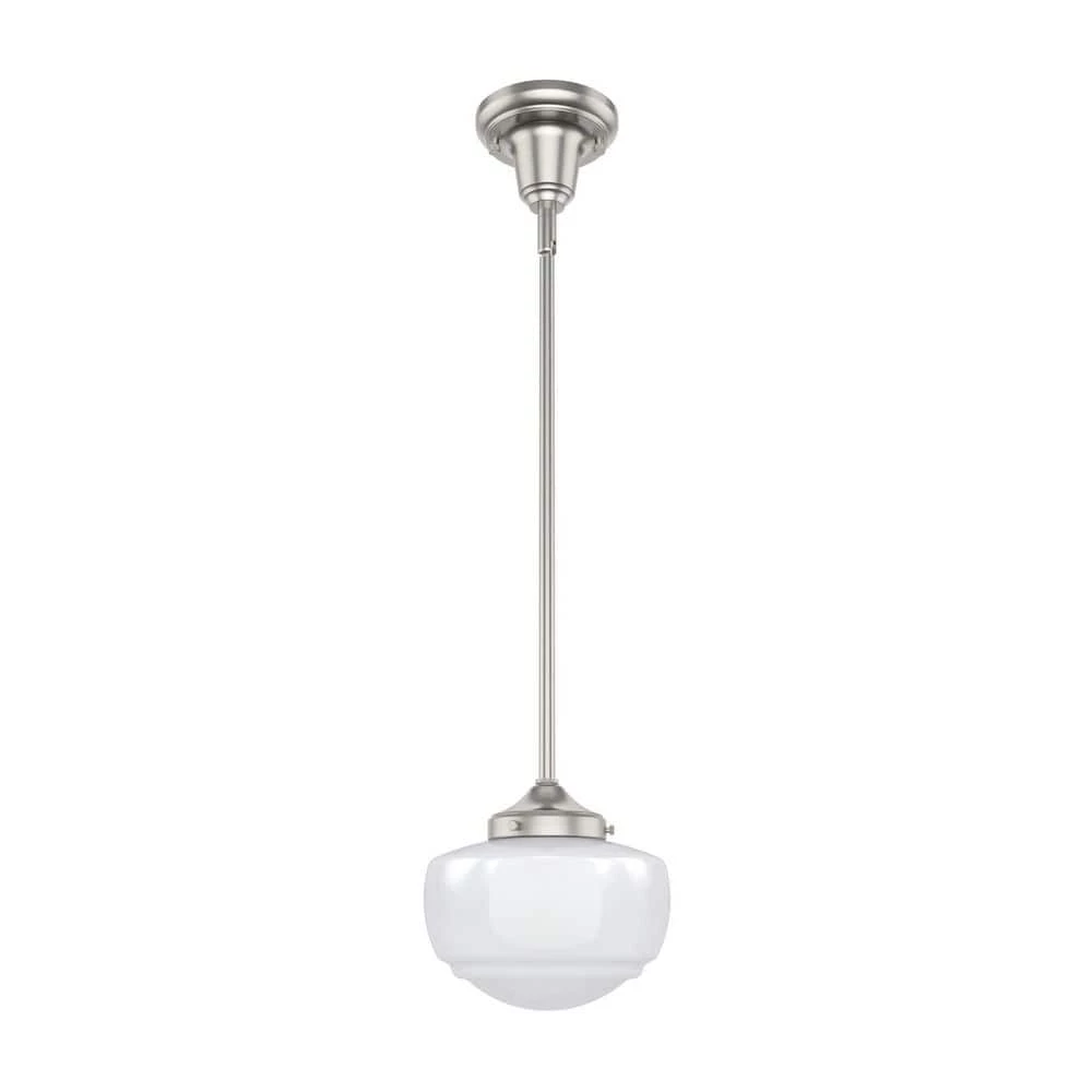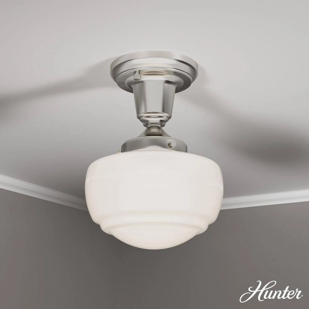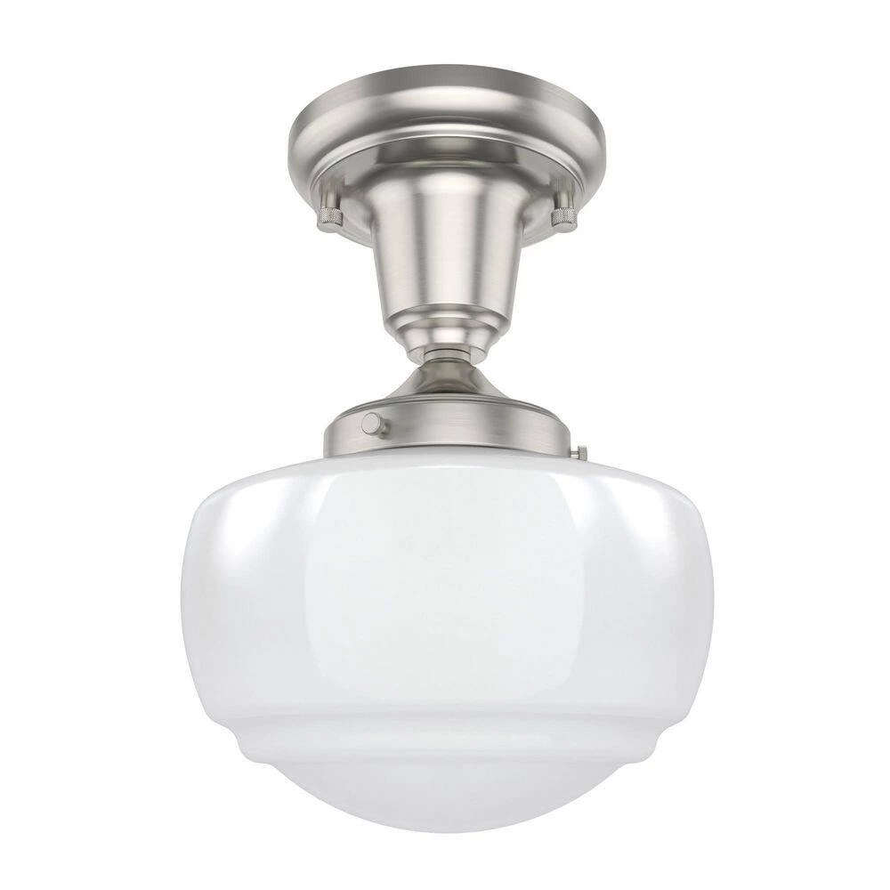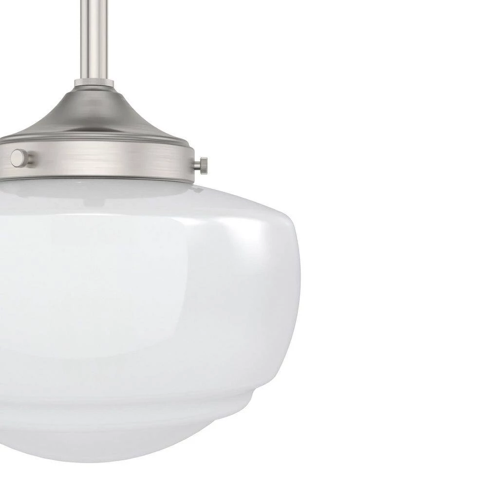 Traditional design. Elevated elements. The Saddle Creek mini pendant draws inspiration from the iconic American schoolhouse light but adds an updated touch with subtle detailing in the glass shade. For those who want all-in-1 light fixtures, this schoolhouse-inspired mini pendant can also be installed as a semi-flush mount lighting.