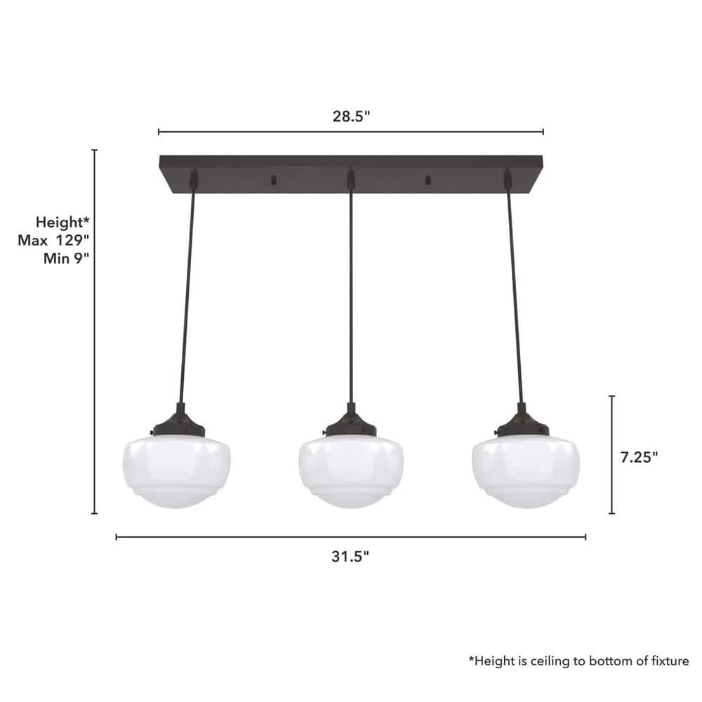 Offering an elevated take on schoolhouse style, the Saddle Creek 3-light, linear cluster is designed to introduce some wow factor into your living room, great room or study. The vintage-style of the illuminating globes are balanced by the fixture’s subtle metal finish and fittings. A decorative ceiling canopy is the crowning touch on this stylish new traditional centerpiece.