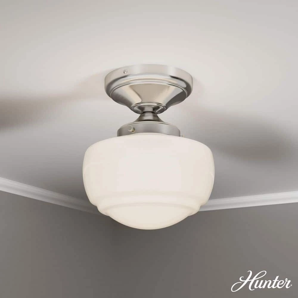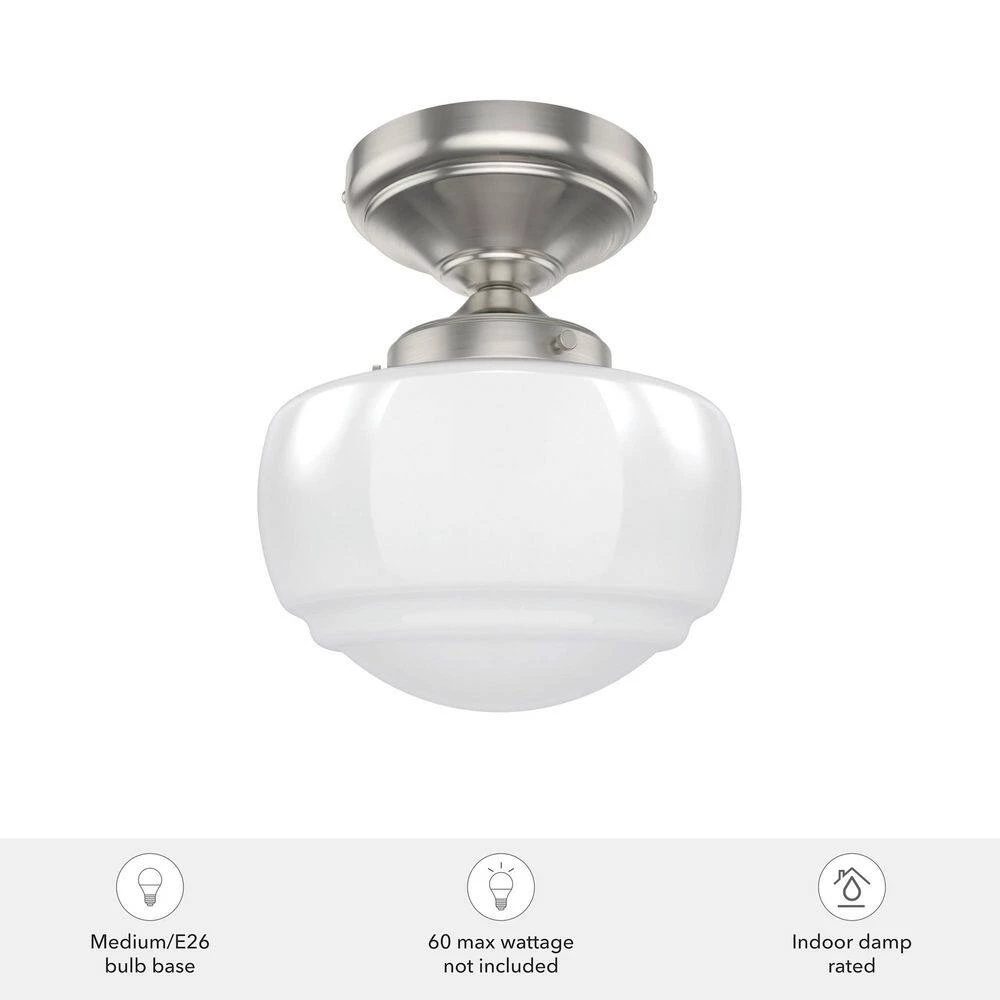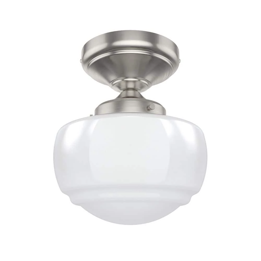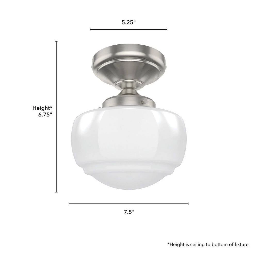 Iconic style, reimagined. Inspired by the classic American schoolhouse light, the Saddle Creek 1-light semi-flush mount combines simple design elements to create a subtly sophisticated style. Available in cased white or clear seeded glass, the Saddle Creek’s semi-flush mount makes this fixture an ideal choice for smaller spaces or rooms with low ceilings.