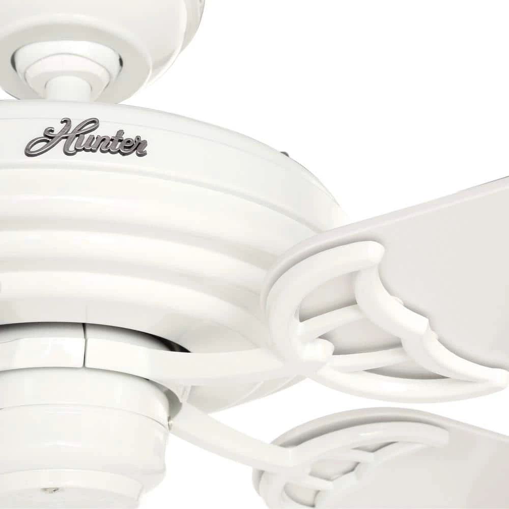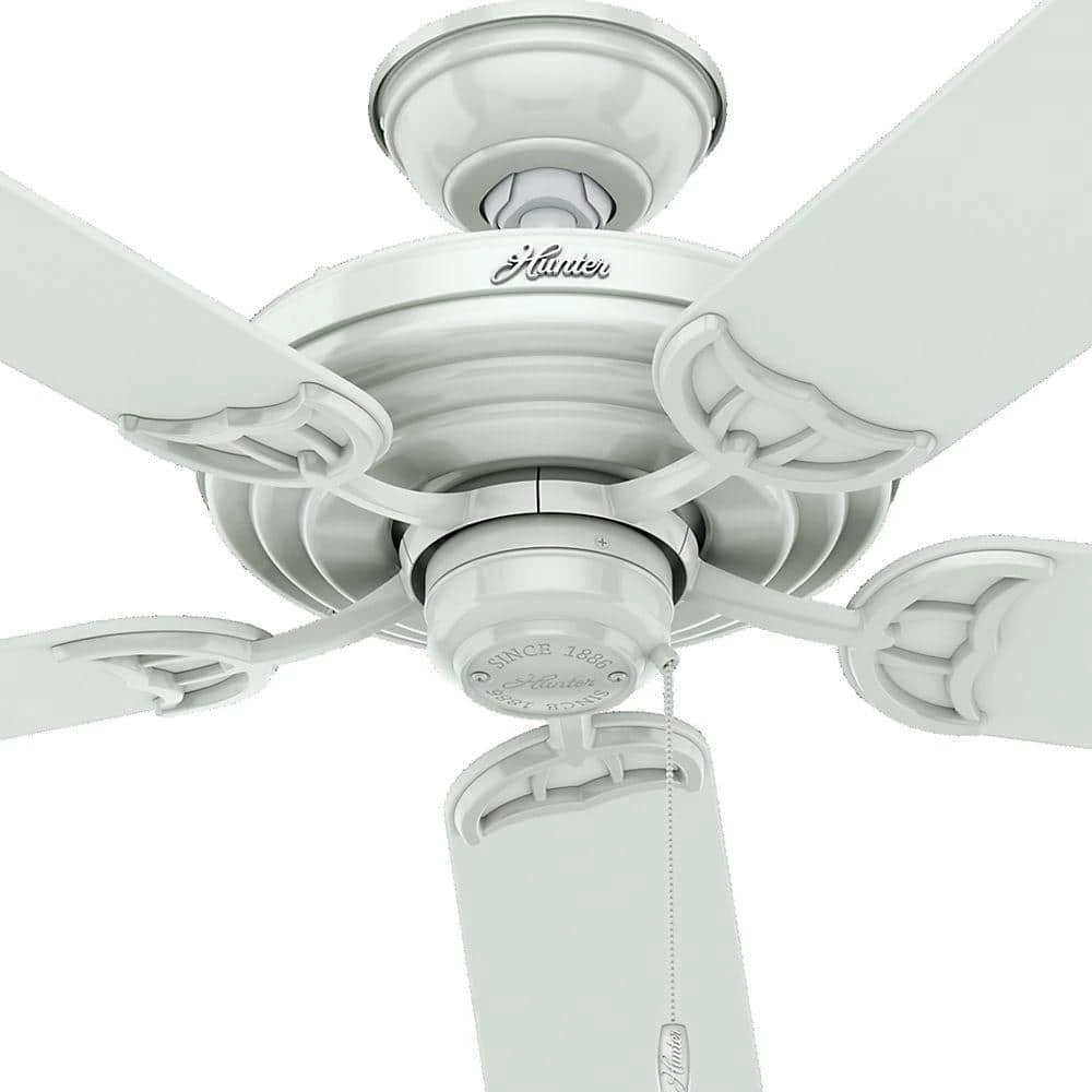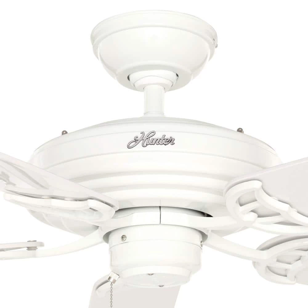 Designed for outdoor locations, the Hunter 52 in. Sea Air Ceiling Fan adds comfort and style to any space. Complete with a tarnish-resistant finish and hardware, this five-blade fan can save on cooling costs. And like all Hunter fans, it features a high performance, WhisperWind motor, built to exacting tolerances from the finest materials and rigorously tested to be truly whisper quiet.